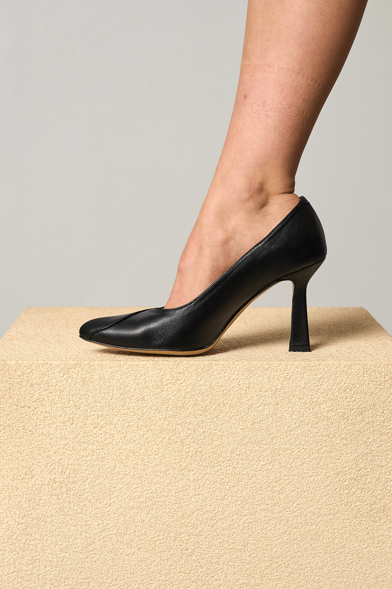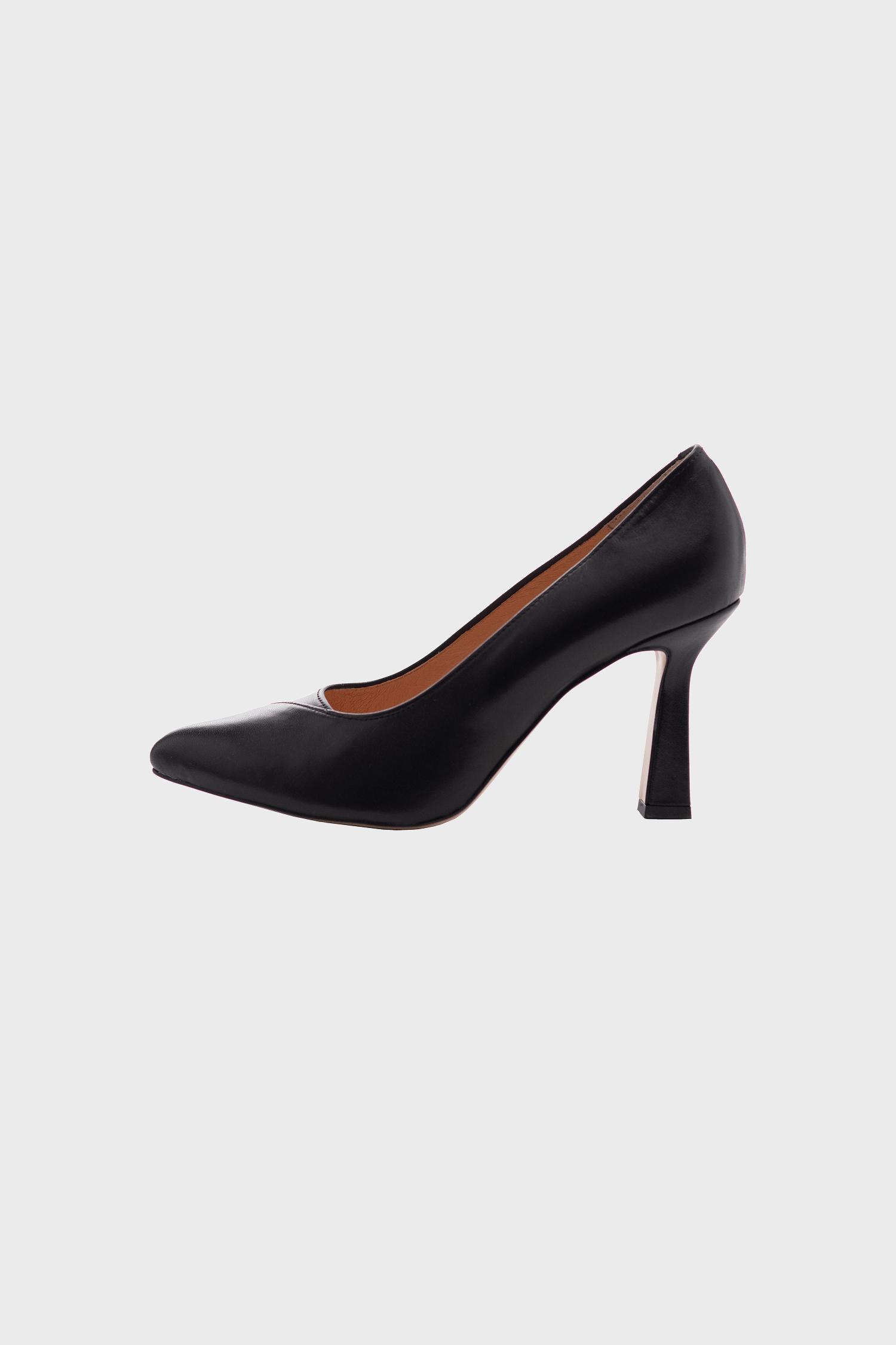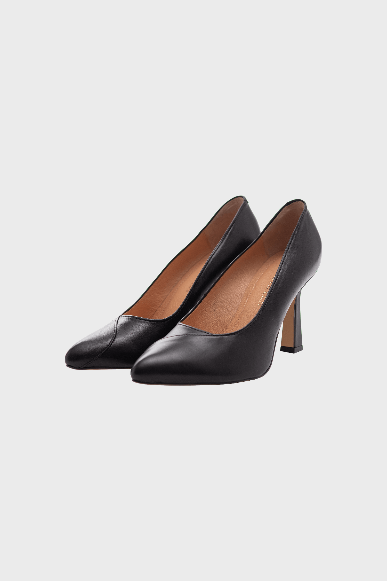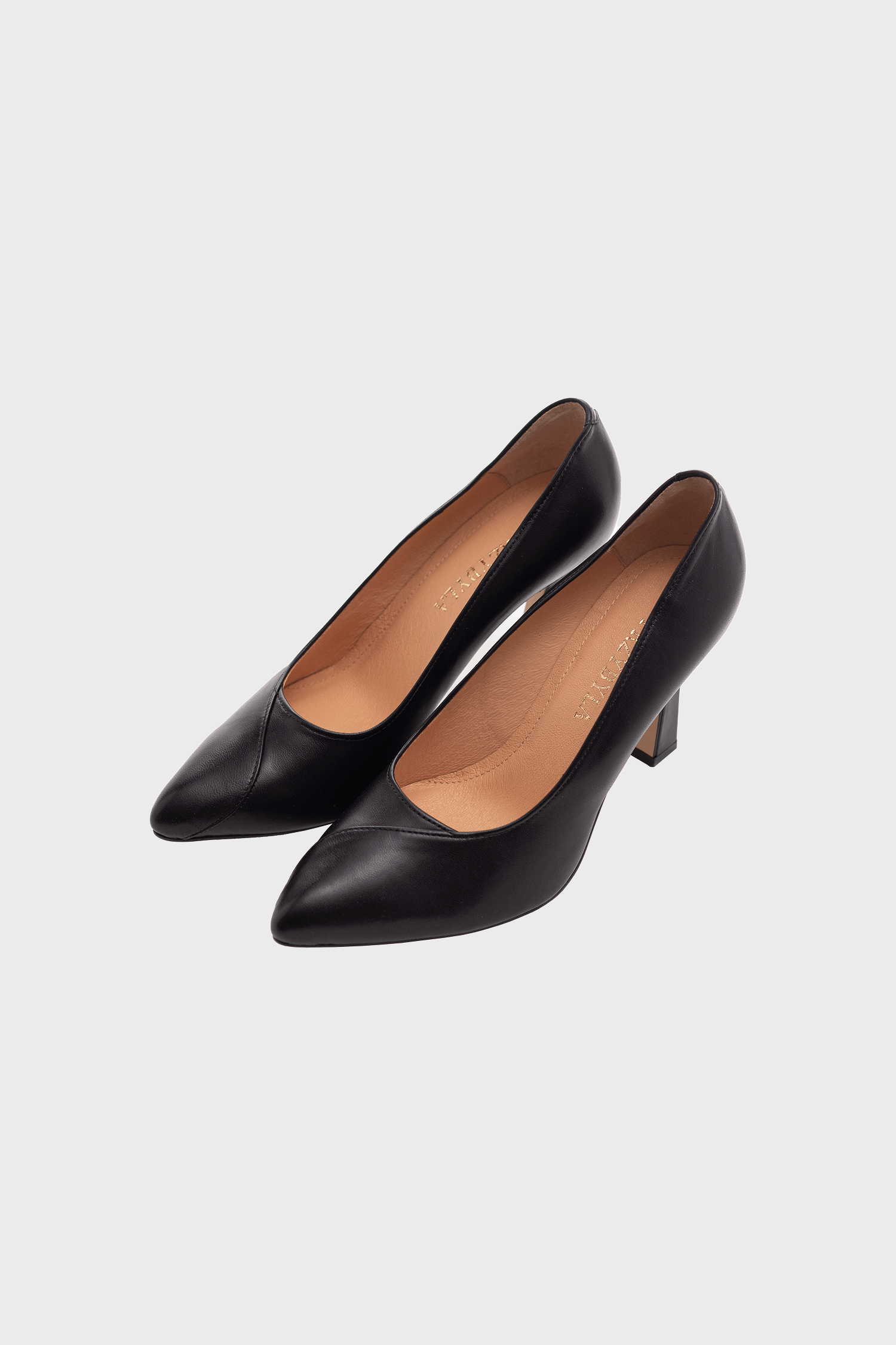 Klasyczne, czarne czółenka na średniej wysokości obcasie. Czubek lekko zaokrąglony w kształt migdała (almond shoes). Wykonane zostały ze skóry naturalnej w kolorze czarnym. W środku znajduje się podszewka również ze skóry naturalnej oraz pianka zapewniająca komfort użytkowania.