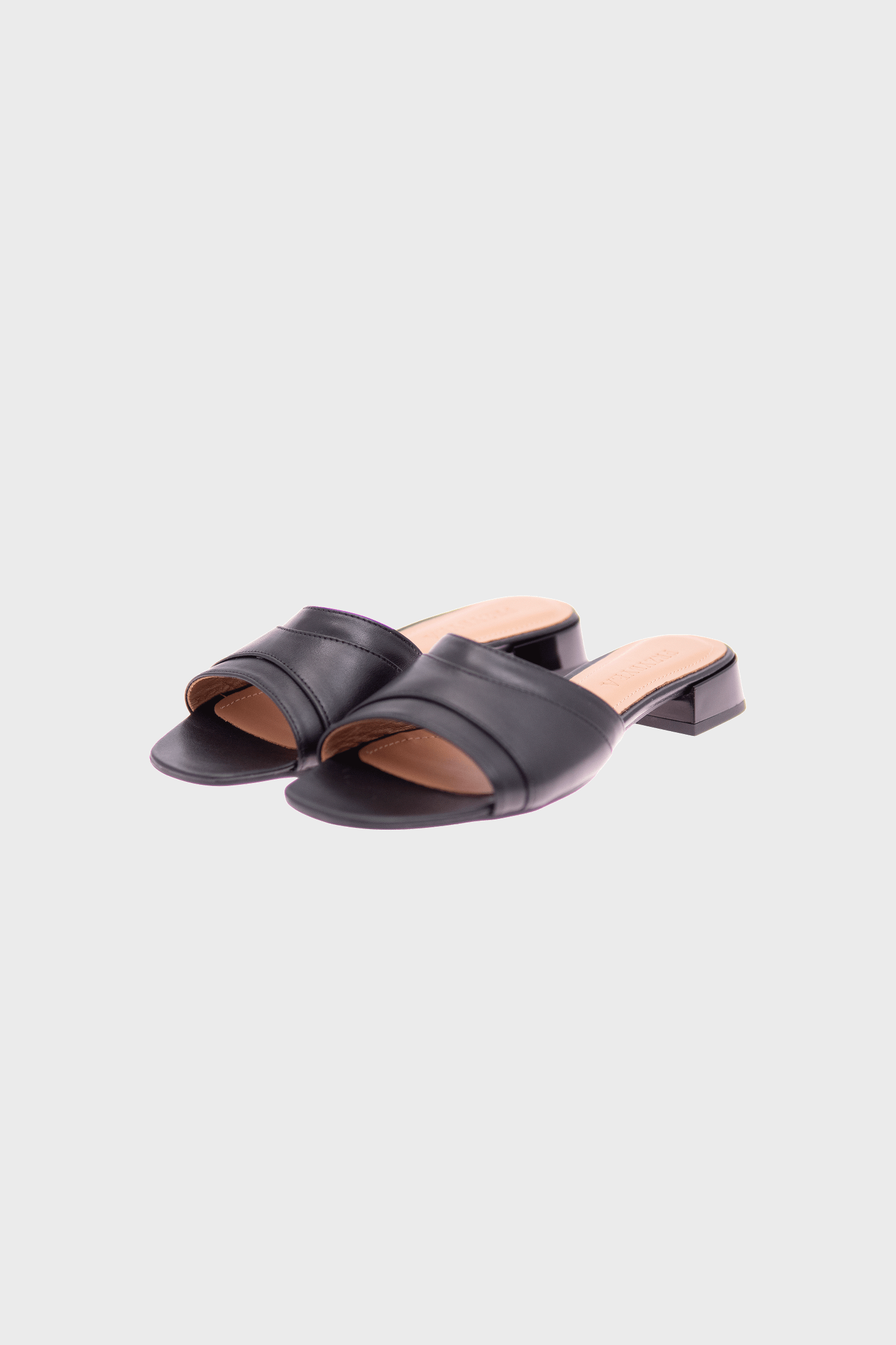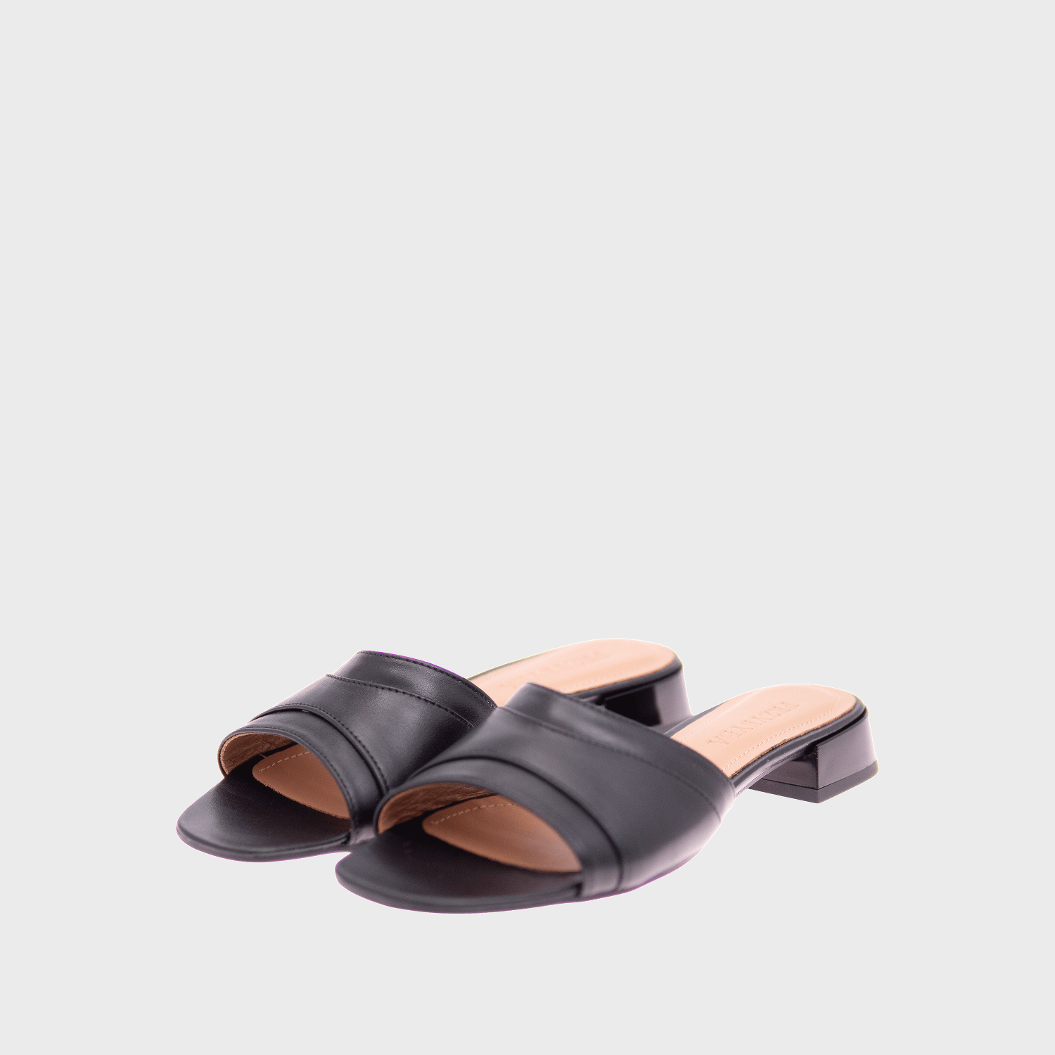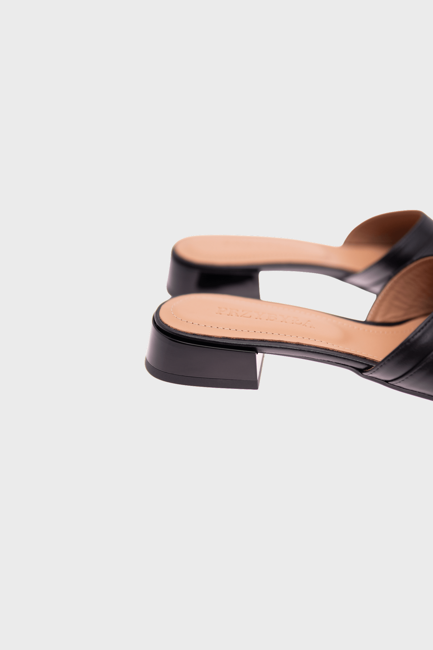 Klasyczne, czarne klapki. Wykonane zostały ze skóry naturalnej w kolorze czarnym. Obcas ma 2,5 cm wysokości, jest szeroki i stabilny. W środku znajduje się podszewka również ze skóry naturalnej oraz pianka zapewniająca komfort użytkowania.