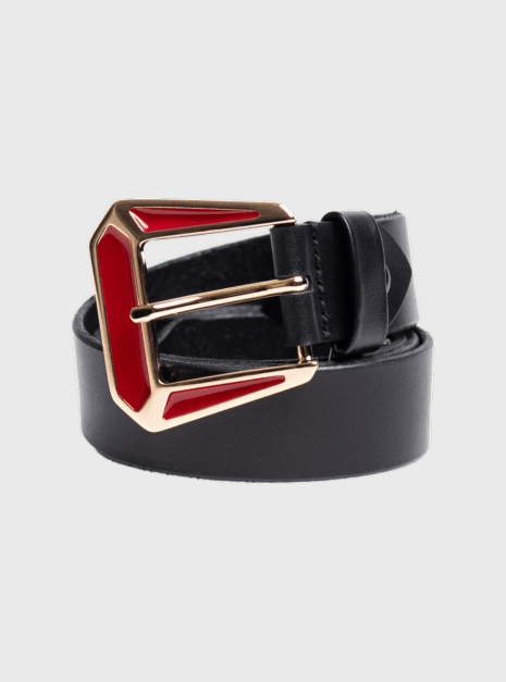 Klamra złota z czerwoną emalią, skóra naturalna w kolorze czarnym