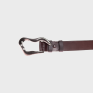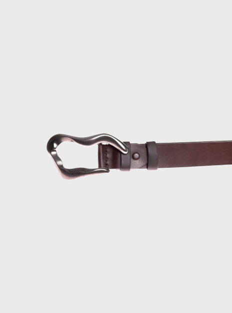Pasek FLOWING to produkt odwołujący się do rzemieślniczych tradycji ręcznego wykonywania galanterii. Powstał licowej skóry bydlęcej garbowanej roślinnie. Nie zawiera dodatkowych usztywnień ani ozdobnych przeszyć.