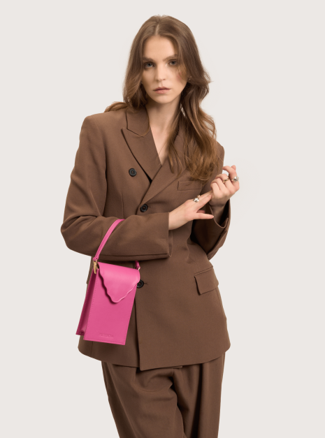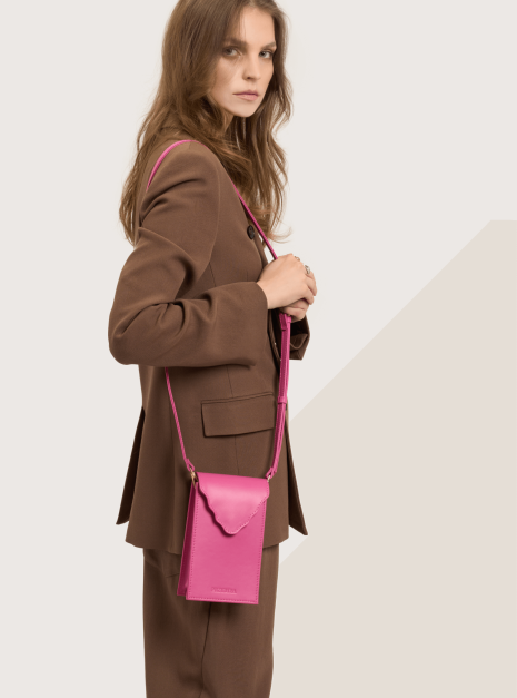 PhoneBag ARC MAX orchid pink to powiększony model torebki PhoneBag. Został wykonany z naturalnej skóry w kolorze intensywnie różowym. Podszewka jest wykonana z bawełnianej tkaniny w kolorze bordowym. Posiada długi regulowany pasek (od 108 cm do 104 cm) oraz krótką rączkę (31 cm). Sprawdzi się w codziennych stylizacjach.