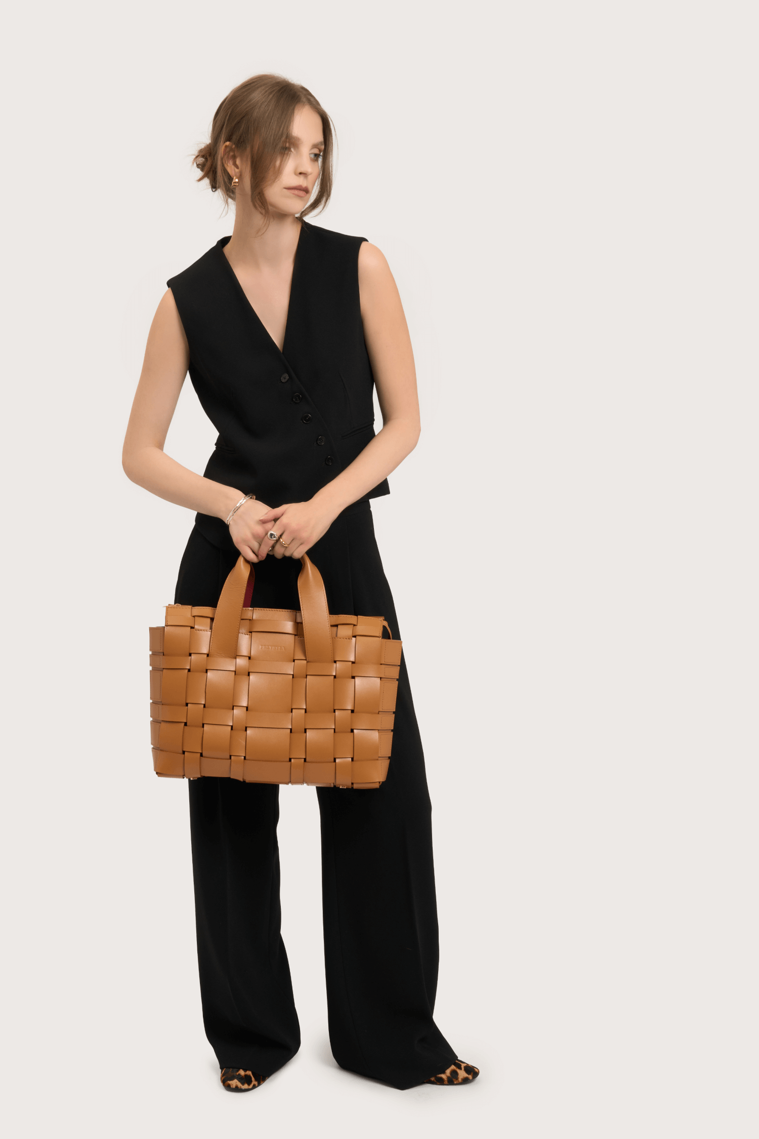 Rączki wychodzą z boków torby zapewniają pewny chwyt konstrukcja pozostaje stabilna. Na torbie znajduje się tłoczone bezbarwne logo. Całość została wykonana ręcznie w Polsce przy użyciu specjalnie wyselekcjonowanych surowców, z dbałością o każdy szczegół.