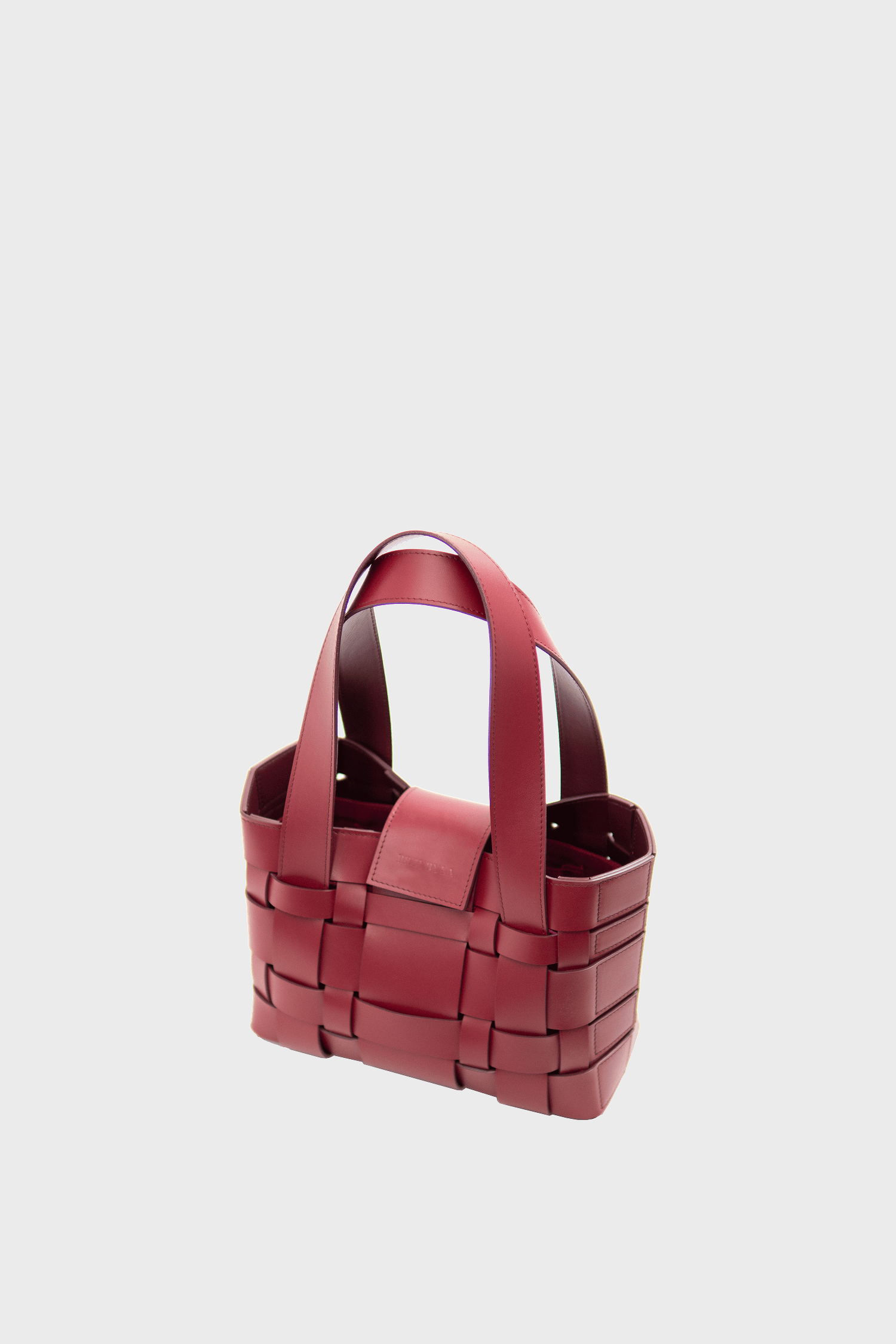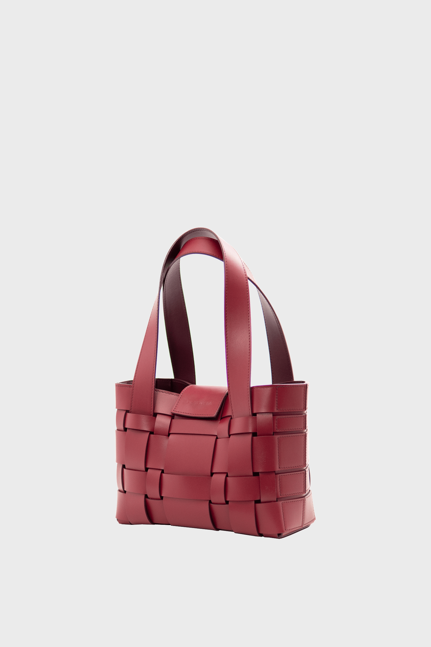 Torba z kolekcji XY w kolorze bordowym i skórzaną podszewką w kolorze ciemnego bordo. Jest to najmniejsza torba w kolekcji XY mieszcząca format A5. Fason torby odpowiada na codzienne potrzeby użytkownika. Jej wyjątkowe zapięcie, stanowiące bazowy element konstrukcji, nadaje wyjątkowy charakter.