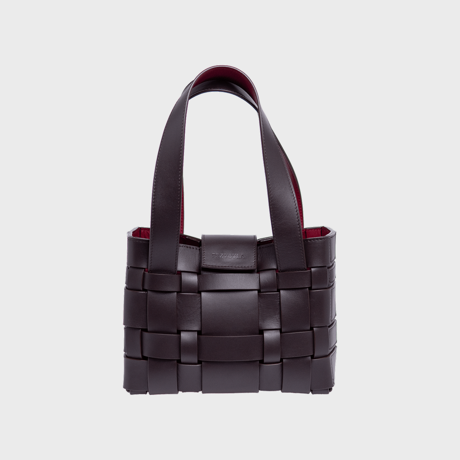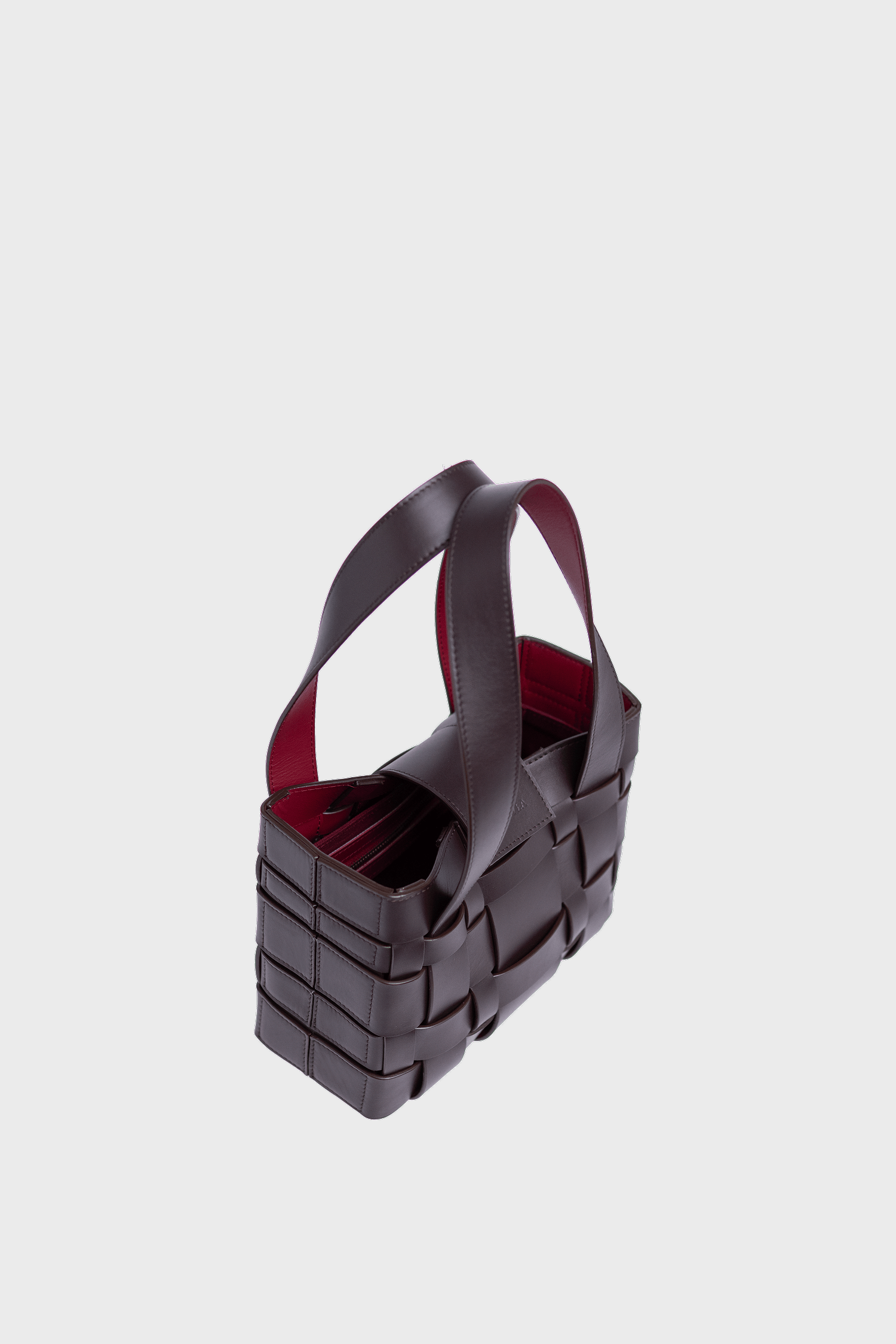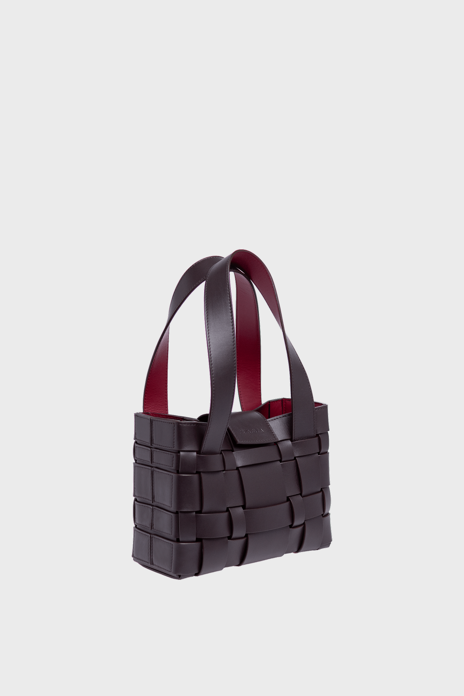 Torba z kolekcji XY w kolorze ciemnej czekolady i skórzaną podszewką w kolorze bordowym. Jest to najmniejsza torba w kolekcji XY mieszcząca format A5. Fason torby odpowiada na codzienne potrzeby użytkownika. Jej wyjątkowe zapięcie, stanowiące bazowy element konstrukcji, nadaje wyjątkowy charakter.