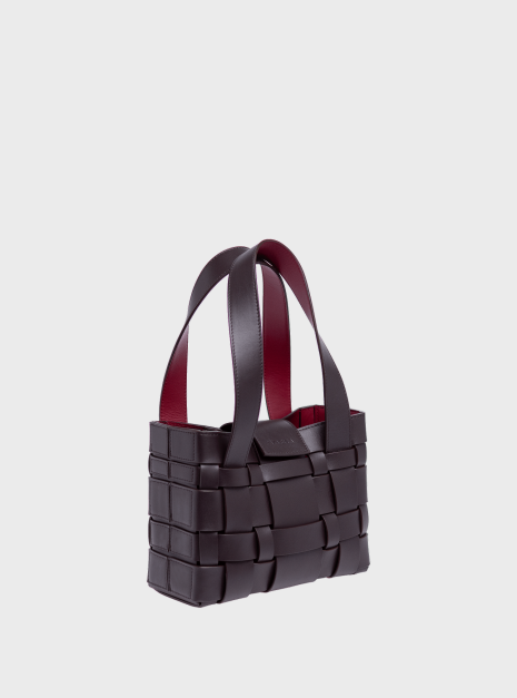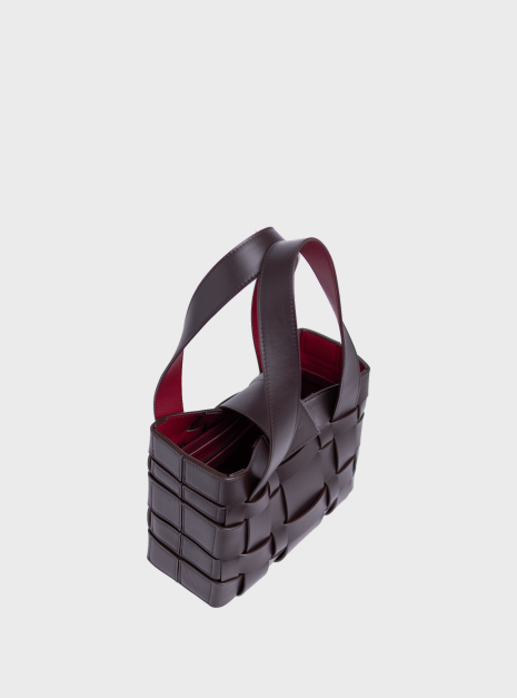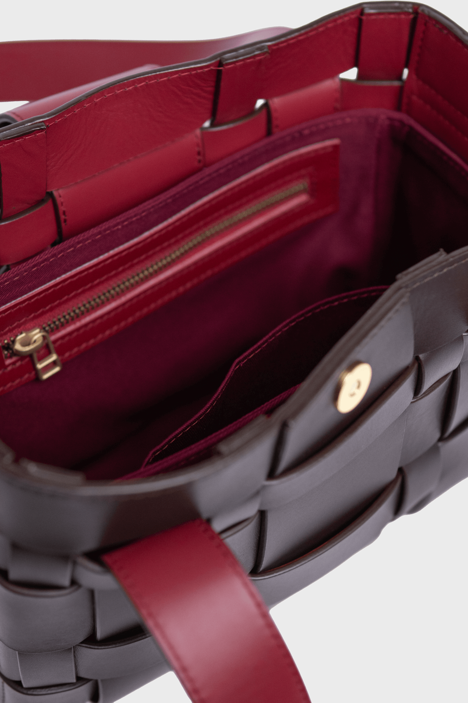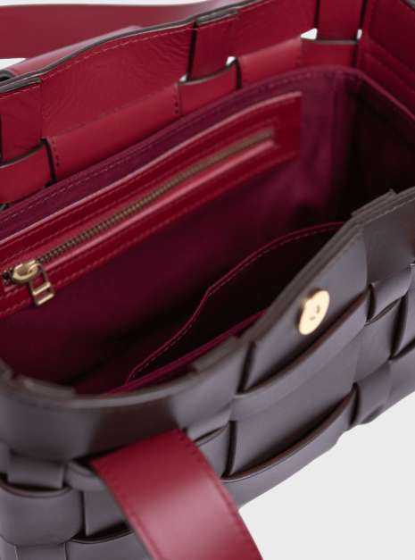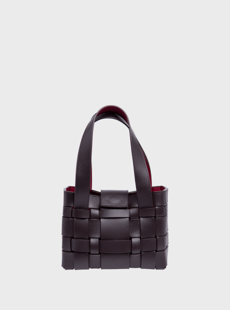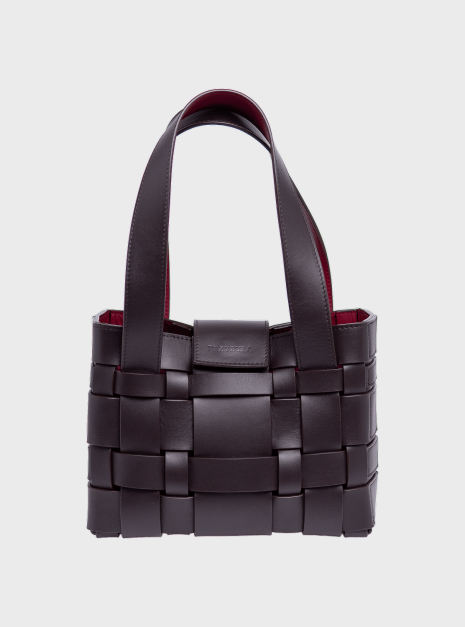 Torba z kolekcji XY w kolorze ciemnej czekolady i skórzaną podszewką w kolorze bordowym. Jest to najmniejsza torba w kolekcji XY mieszcząca format A5. Fason torby odpowiada na codzienne potrzeby użytkownika. Jej wyjątkowe zapięcie, stanowiące bazowy element konstrukcji, nadaje wyjątkowy charakter.