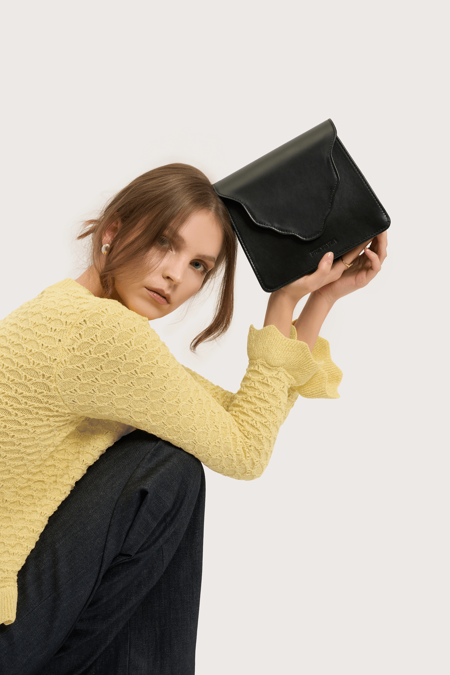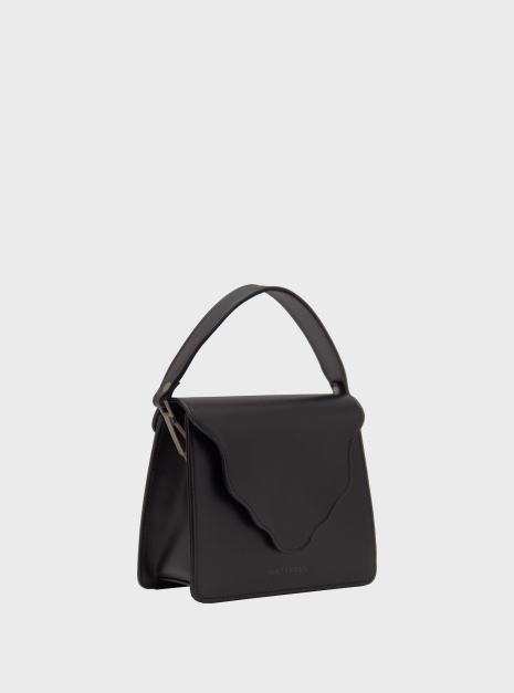 Torebka ARC jest wykonana z wysokiej jakości skóry licowej w kolorze czarnym. Podszewka jest wykonana z bawełnianej tkaniny w kolorze bordowym.
