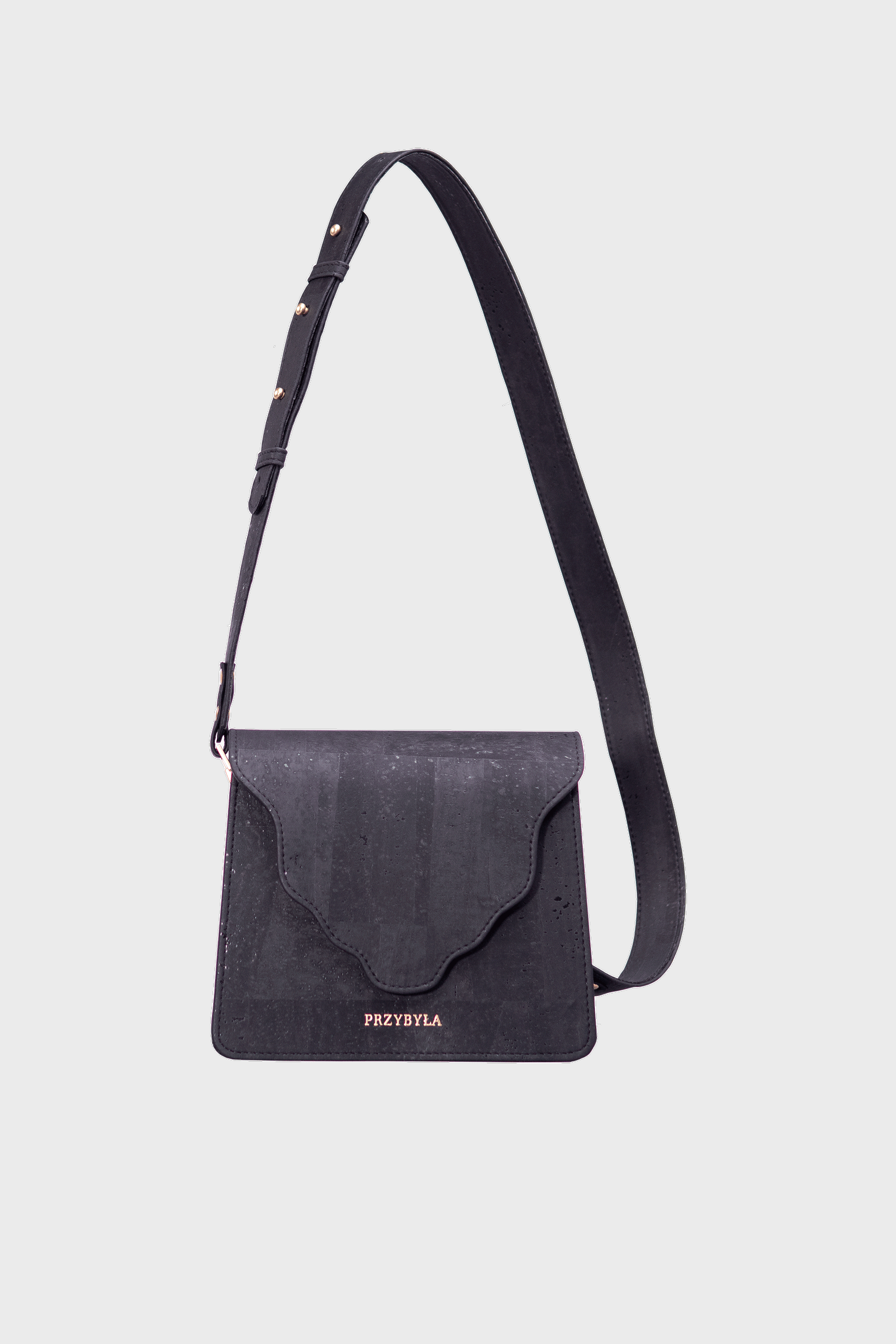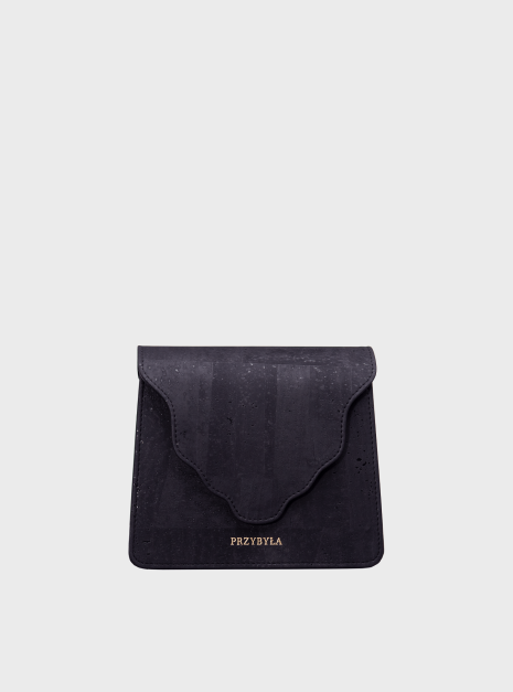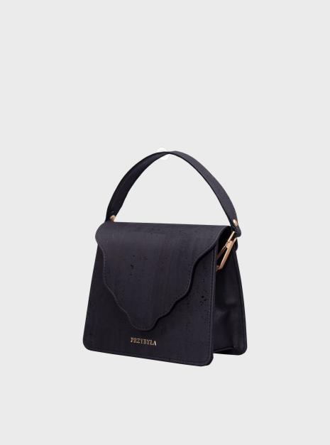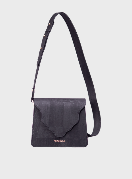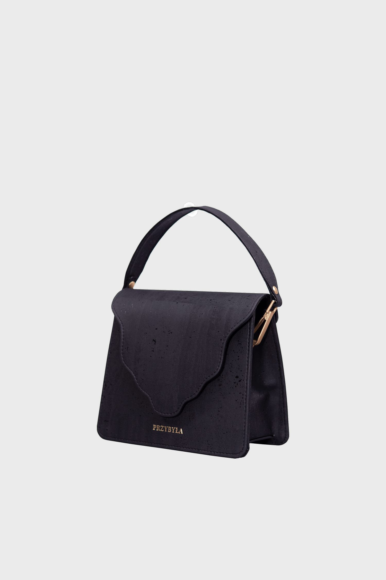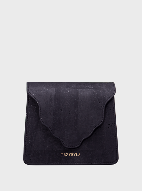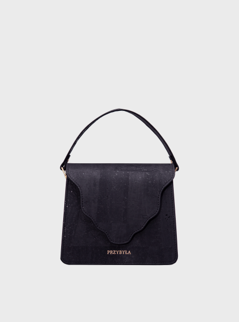 Torebka ARC Cork black został wykonana z korka w kolorze czarnym. Podszewka jest wykonana z bawełnianej tkaniny w kolorze bordowym.