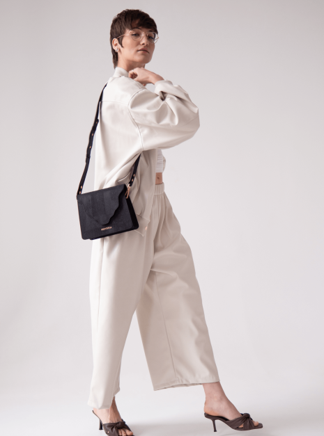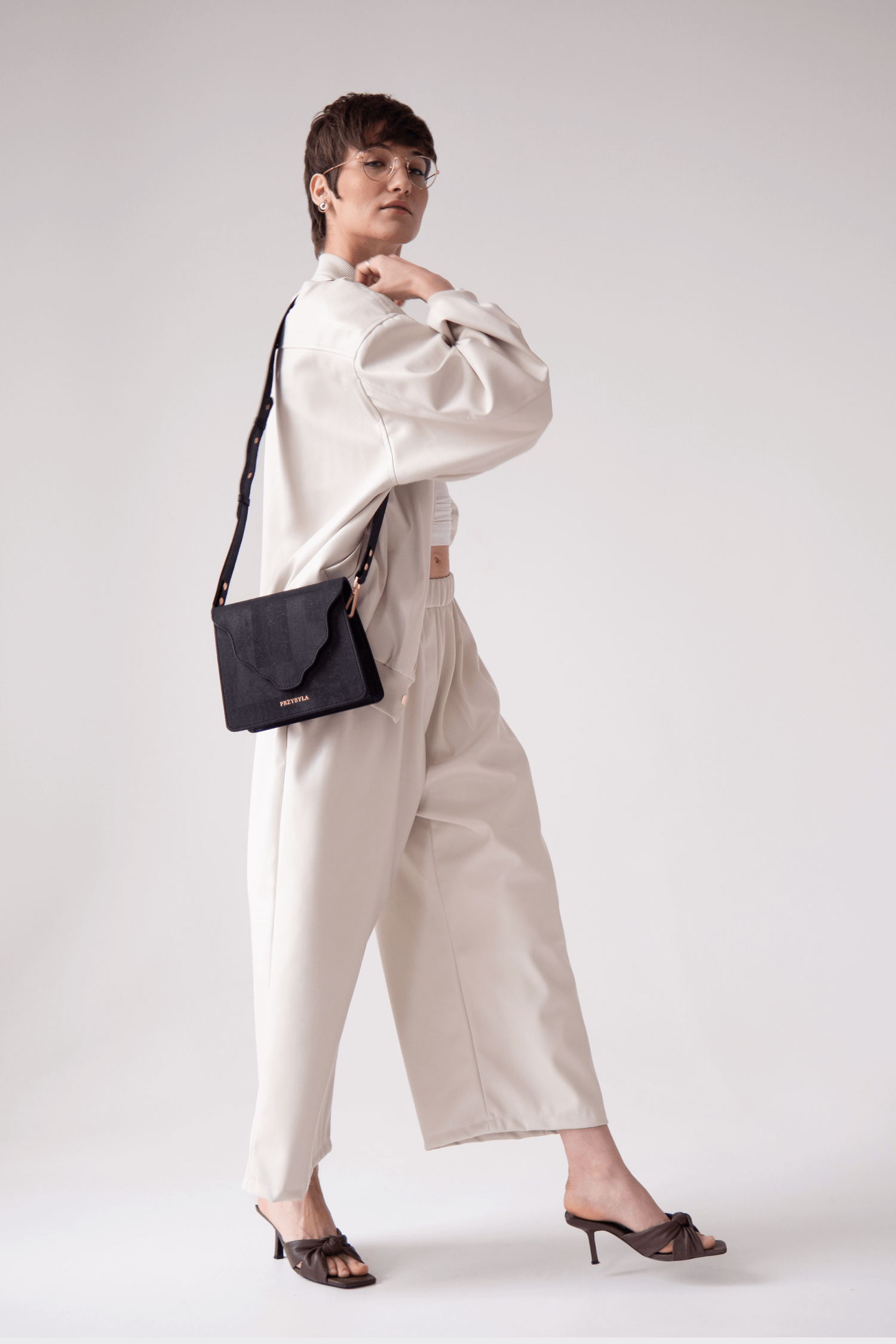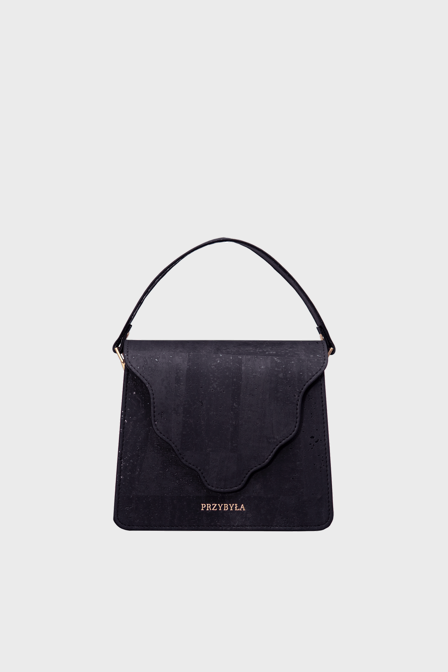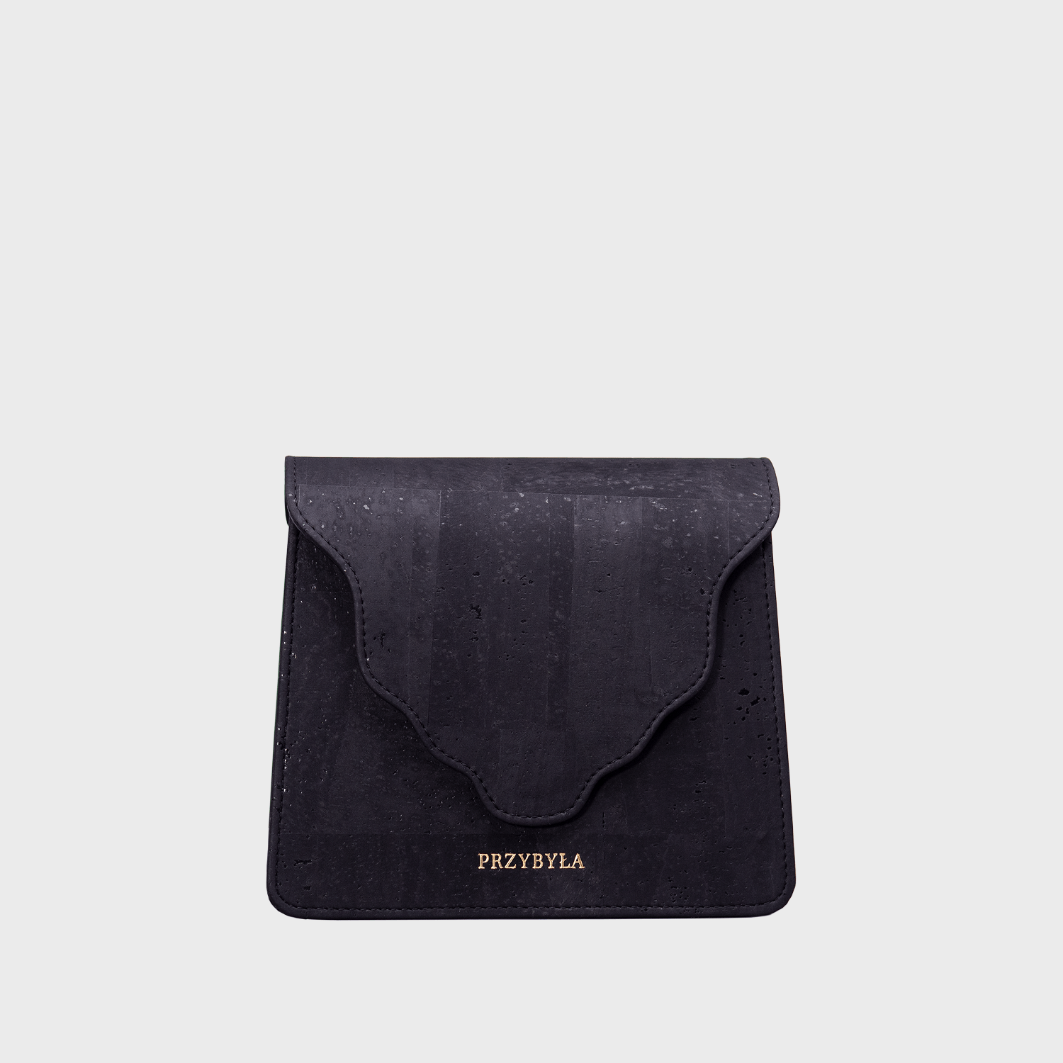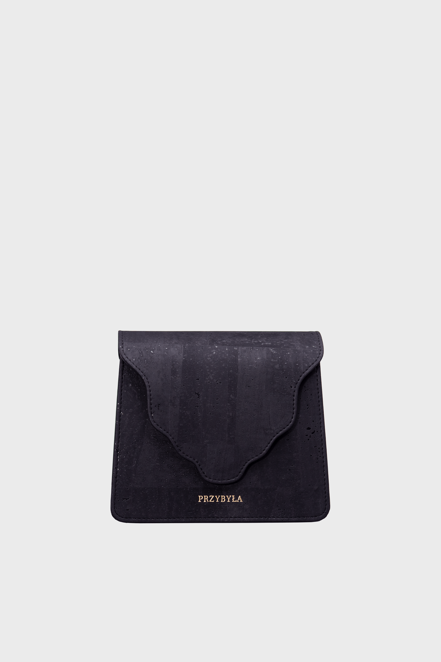 Torebka ARC Cork black został wykonana z korka w kolorze czarnym. Podszewka jest wykonana z bawełnianej tkaniny w kolorze bordowym.
