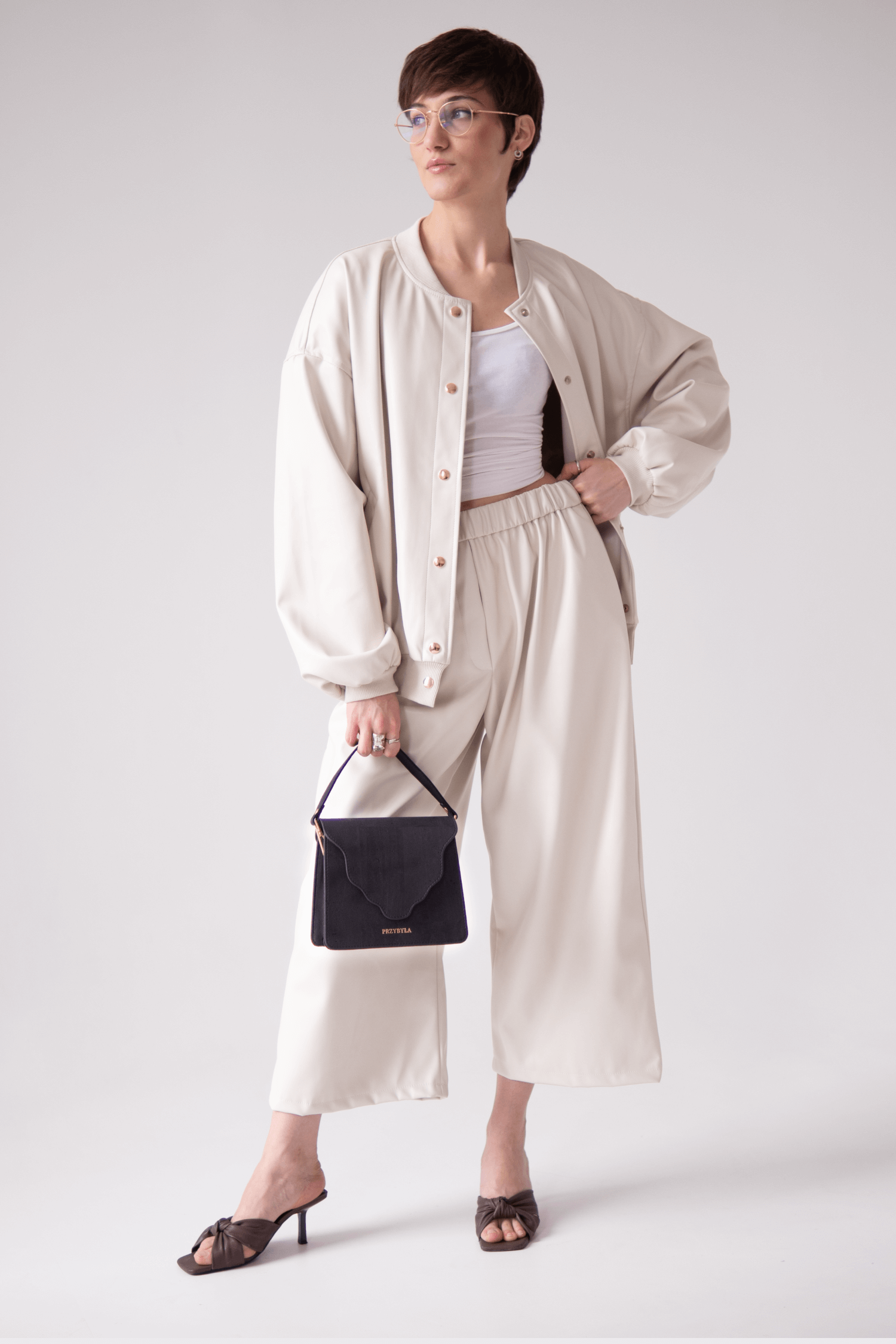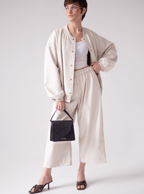 Torebka zmieści telefon, klucze, mały portfel i drobne kosmetyki. W środku znajduje się mała kieszonka do której włożymy kartę płatniczą lub inne dokumenty. Podszewka została wykonana z mocnej tkaniny w kolorze bordowym.