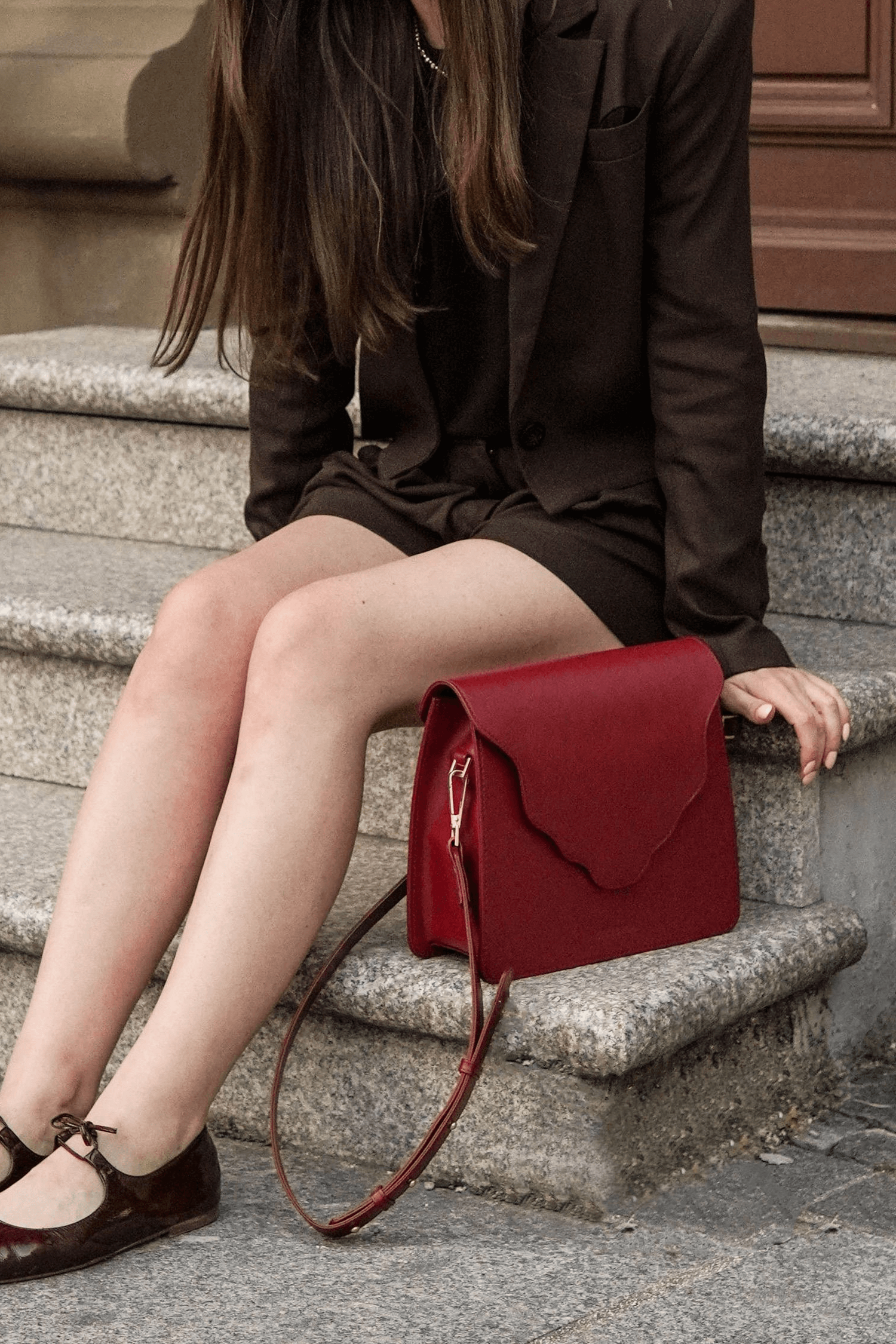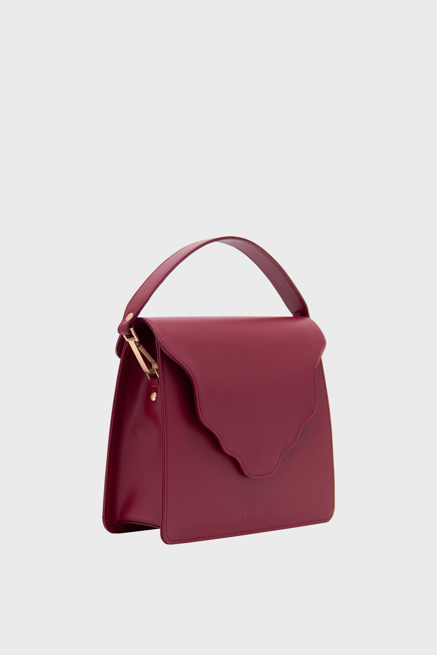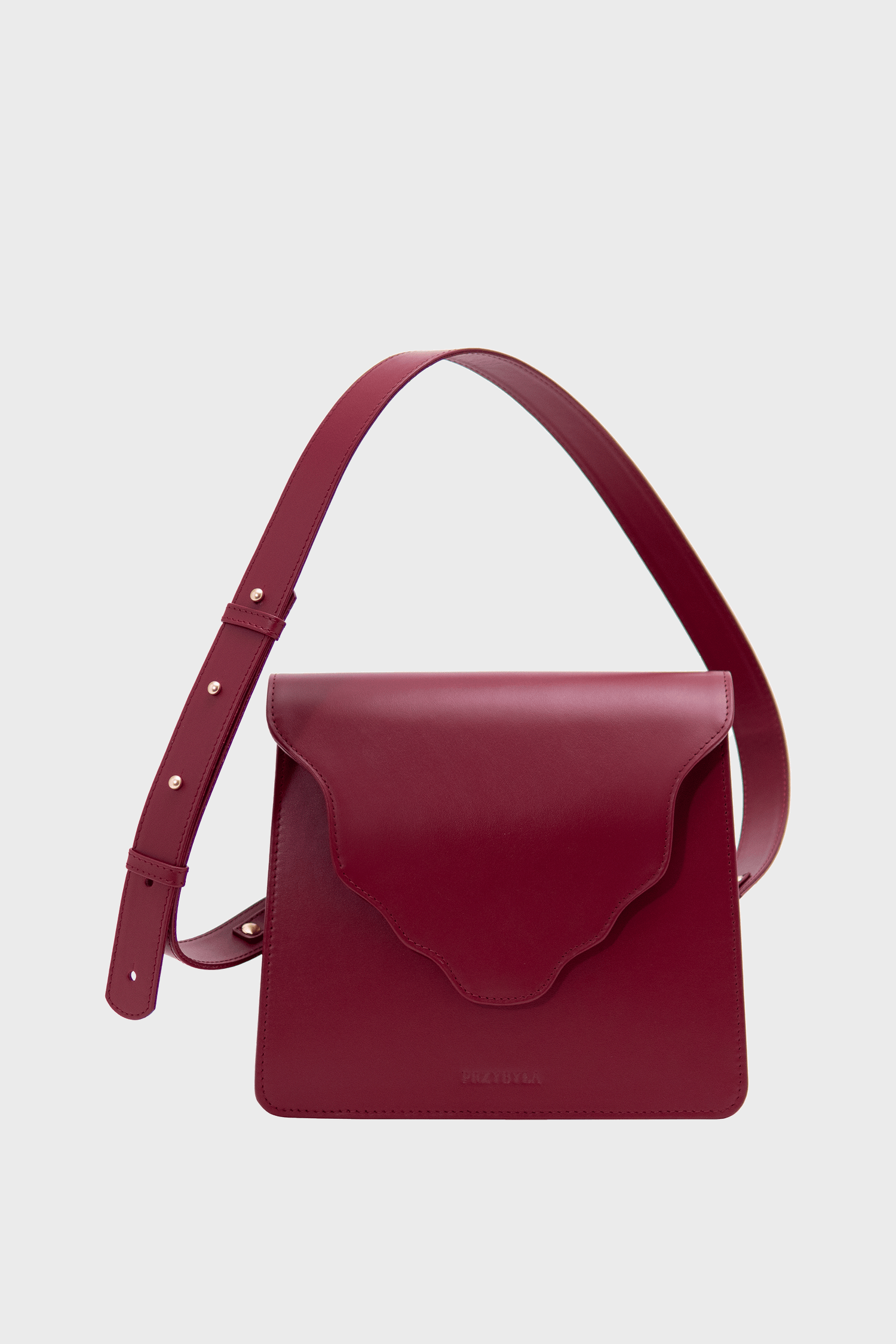 Torebka ARC MIDI burgundy wykonana ze skóry licowej w kolorze bordowym. Podszewka jest wykonana z bawełnianej tkaniny również w kolorze bordowym.