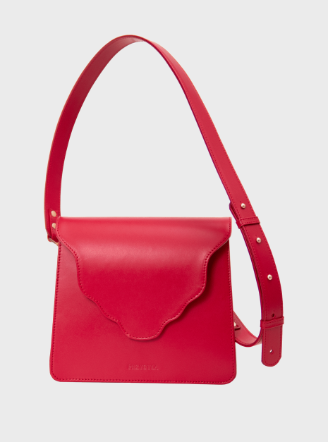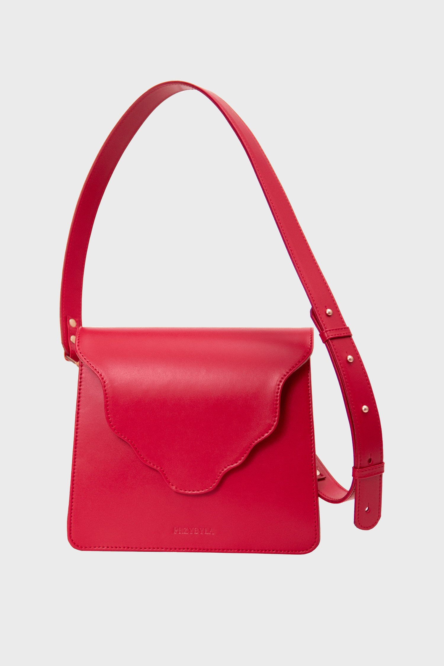 Torebka ARC MIDI to powiększony model Torebki ARC . Torebka został wykonana z naturalnej skóry licowej w kolorze eleganckiej czerwieni. Podszewka jest wykonana z bawełnianej tkaniny w kolorze bordowym.