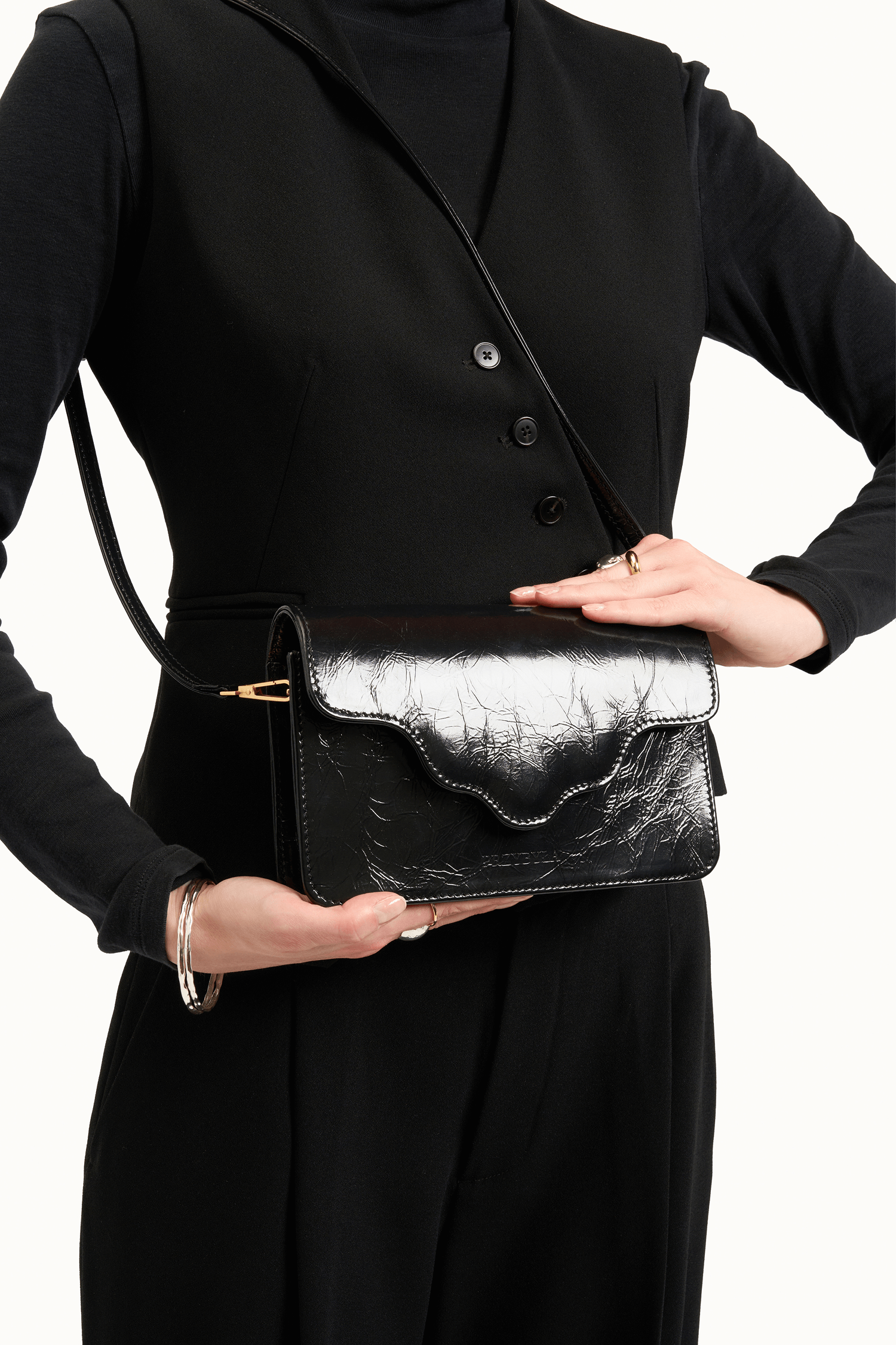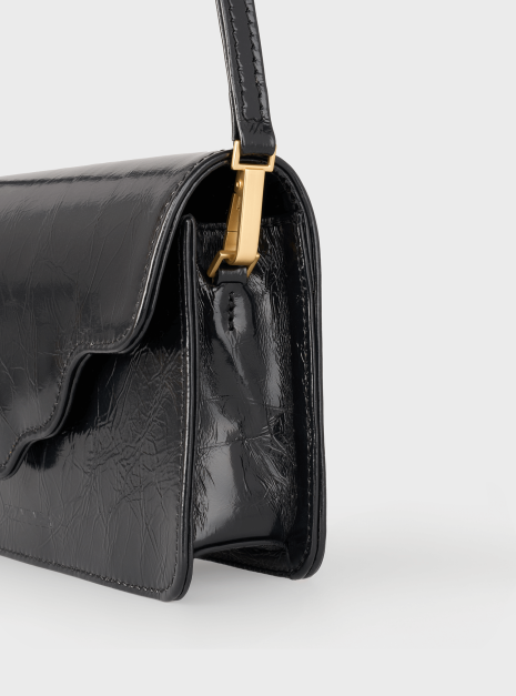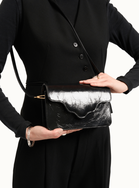 Torebka ARC MINI, wykonaną z wysokiej jakości skóry naturalnej w kolorze czarnym z teksturą. Ta torebka to doskonałe połączenie nowoczesności z klasycznym stylem, które zachwyci każdego.