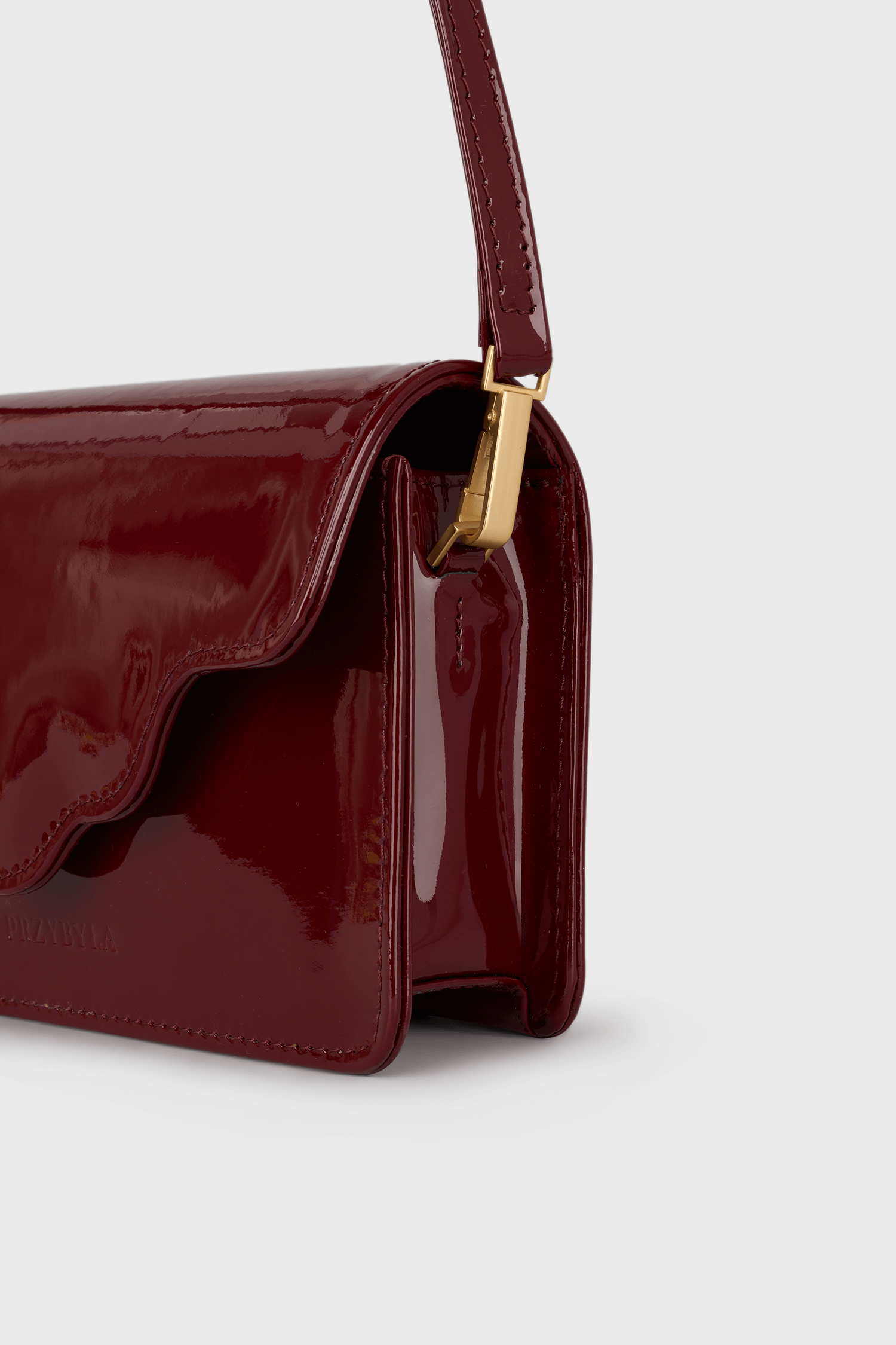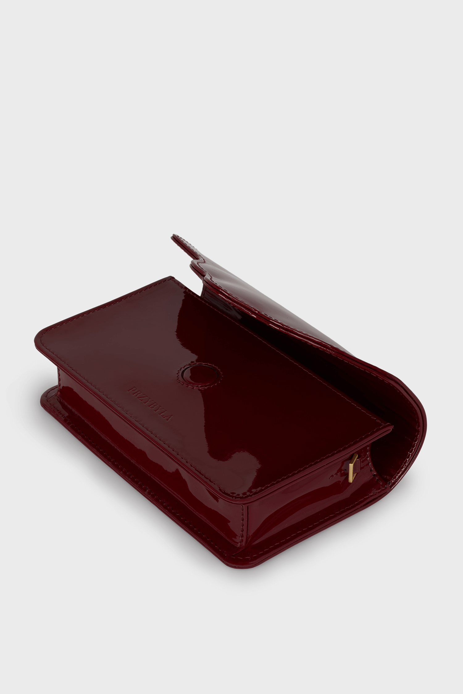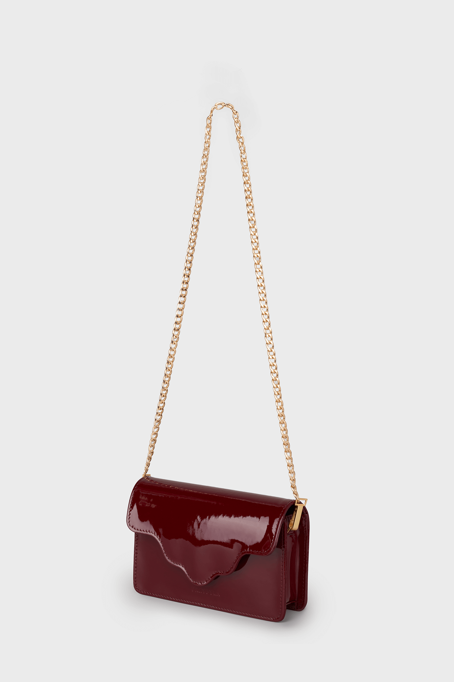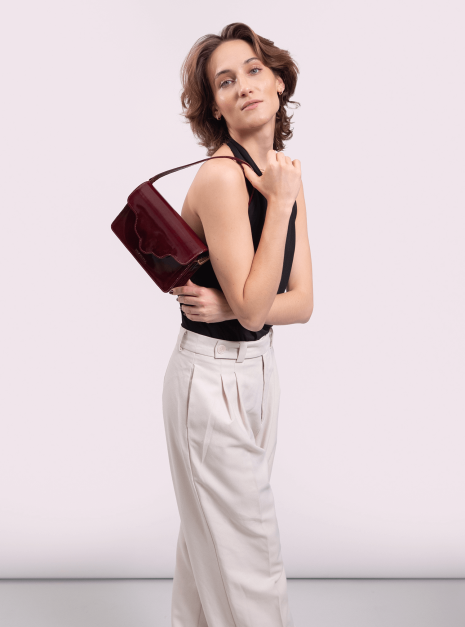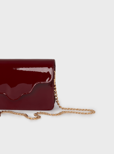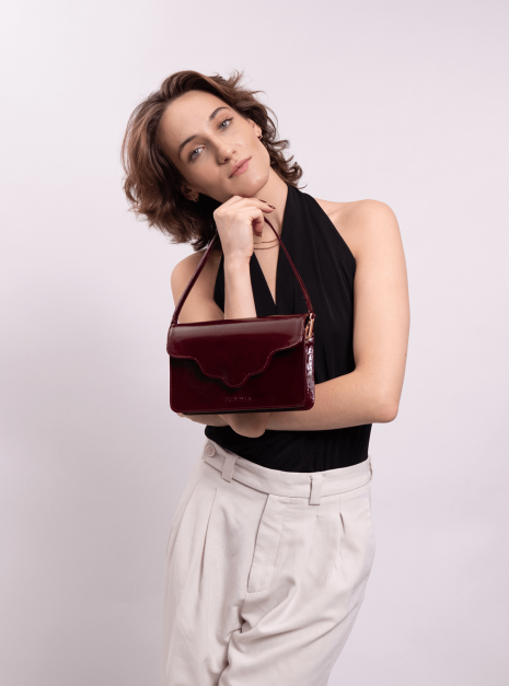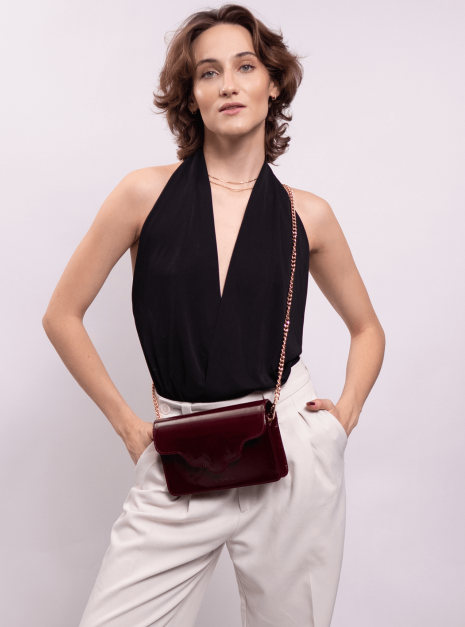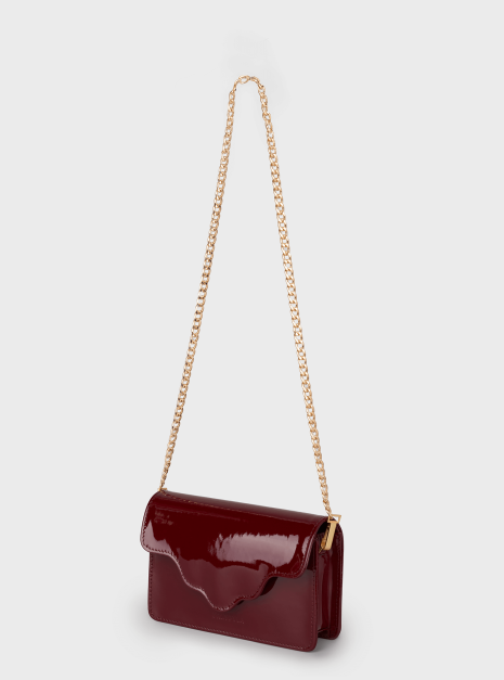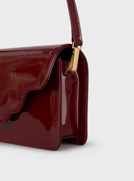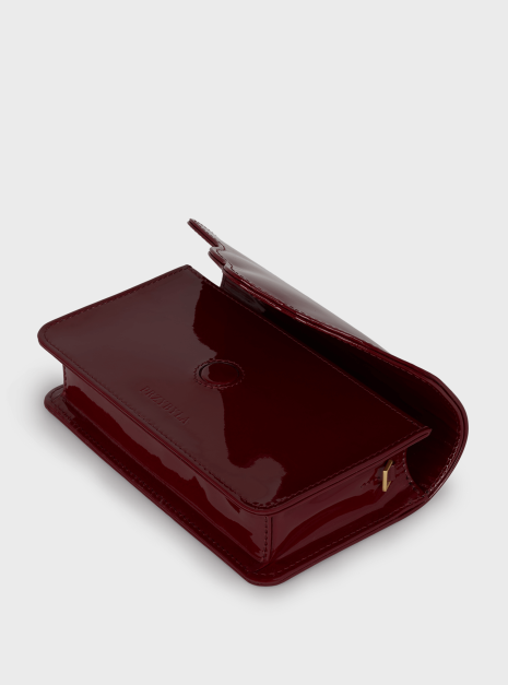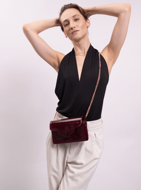 Torebka ARC MINI, wykonaną z wysokiej jakości skóry lakierowanej w bordowym kolorze. Ta torebka to doskonałe połączenie nowoczesności z klasycznym stylem, które zachwyci każdego.