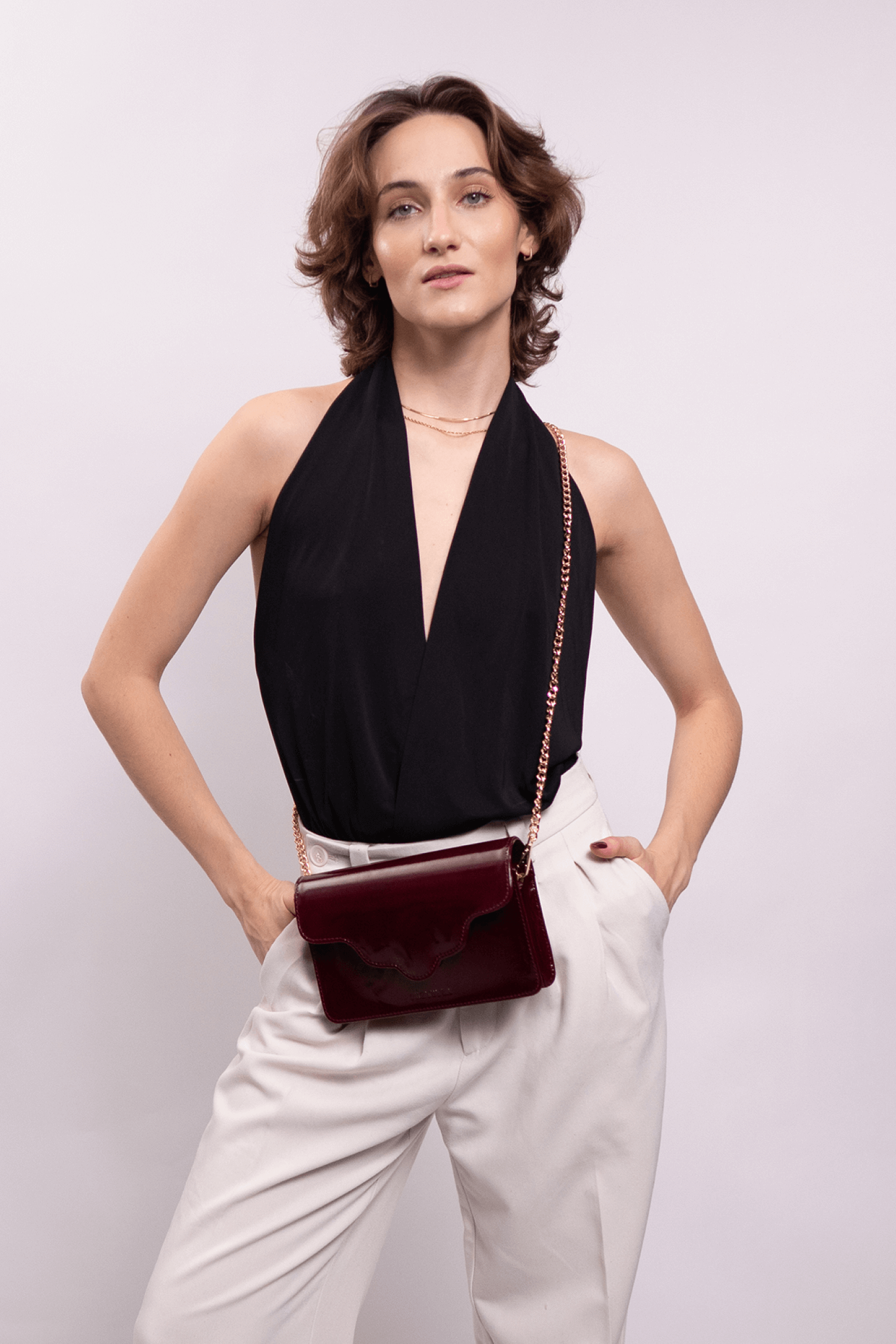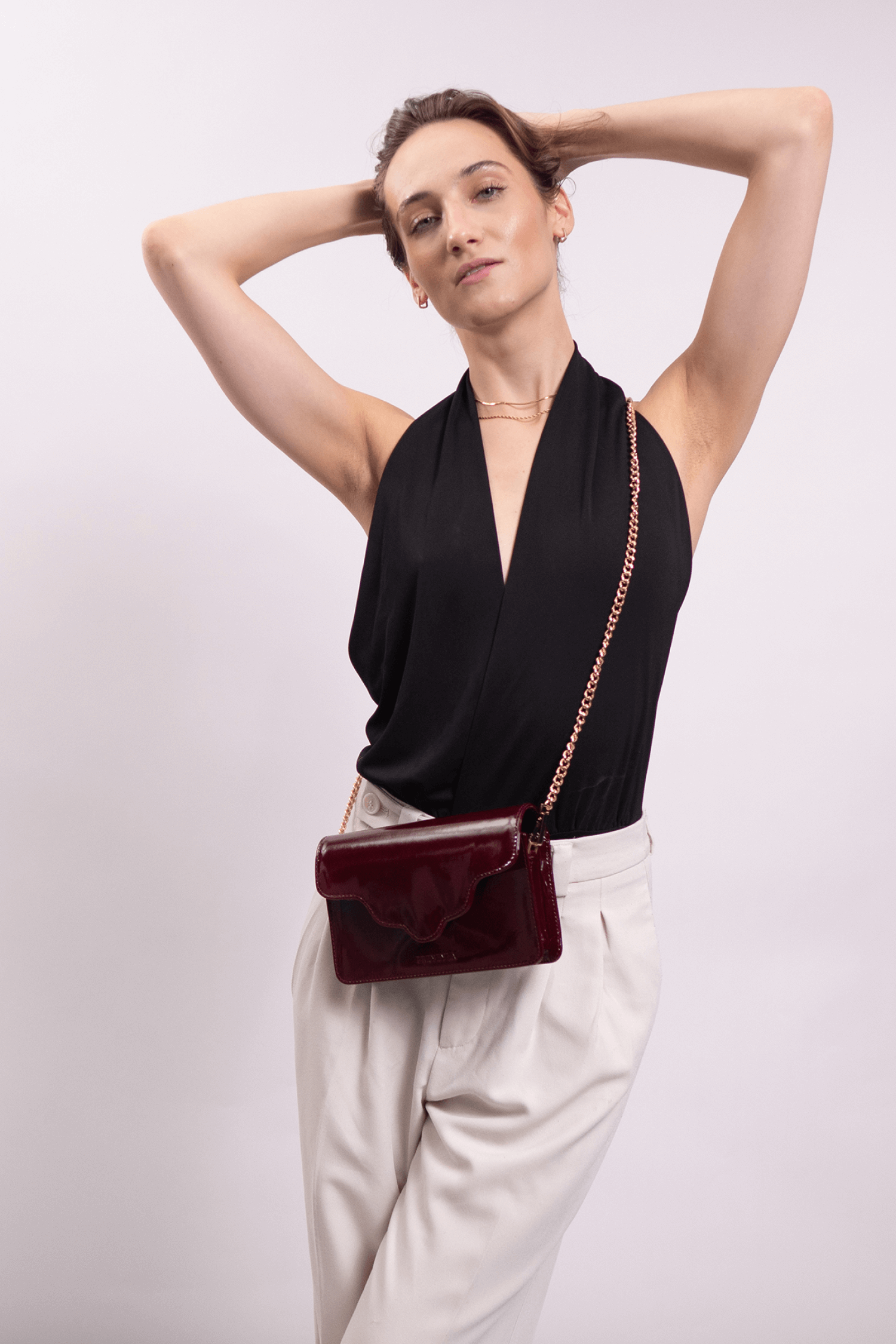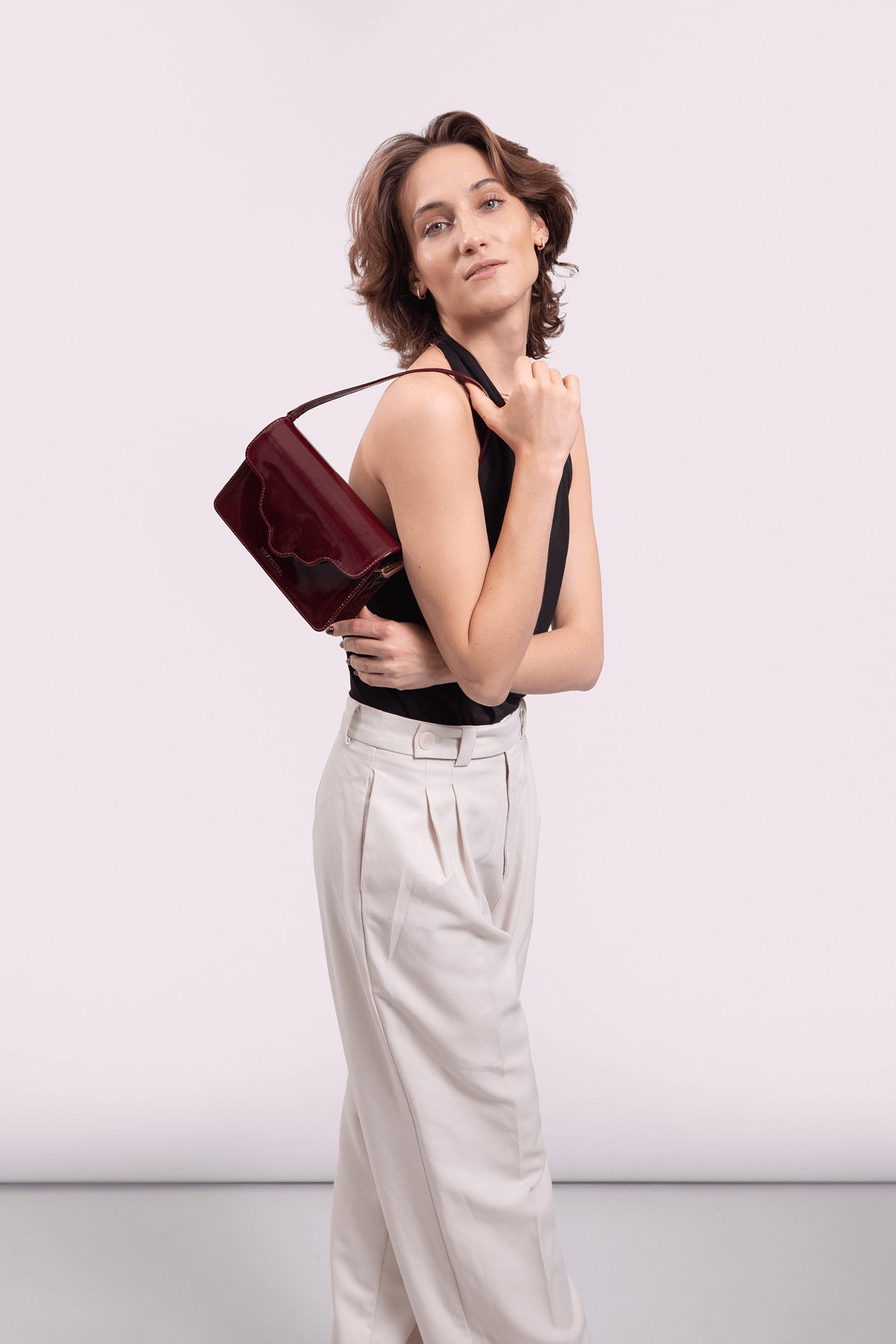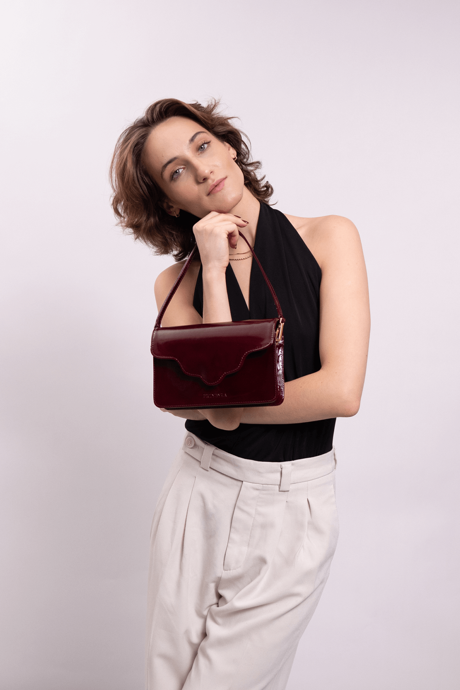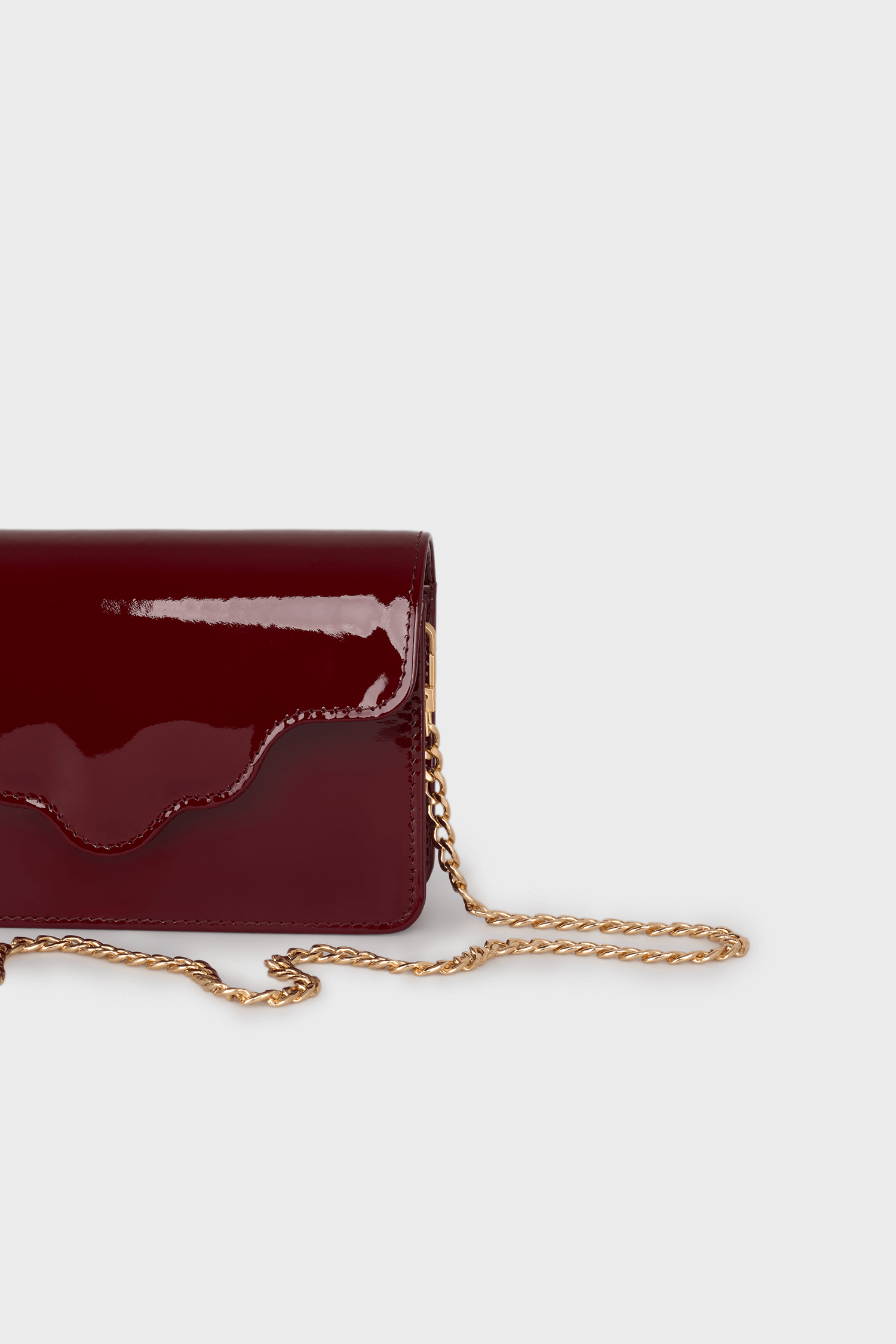 Torebka ARC MINI, wykonaną z wysokiej jakości skóry lakierowanej w bordowym kolorze. Ta torebka to doskonałe połączenie nowoczesności z klasycznym stylem, które zachwyci każdego.