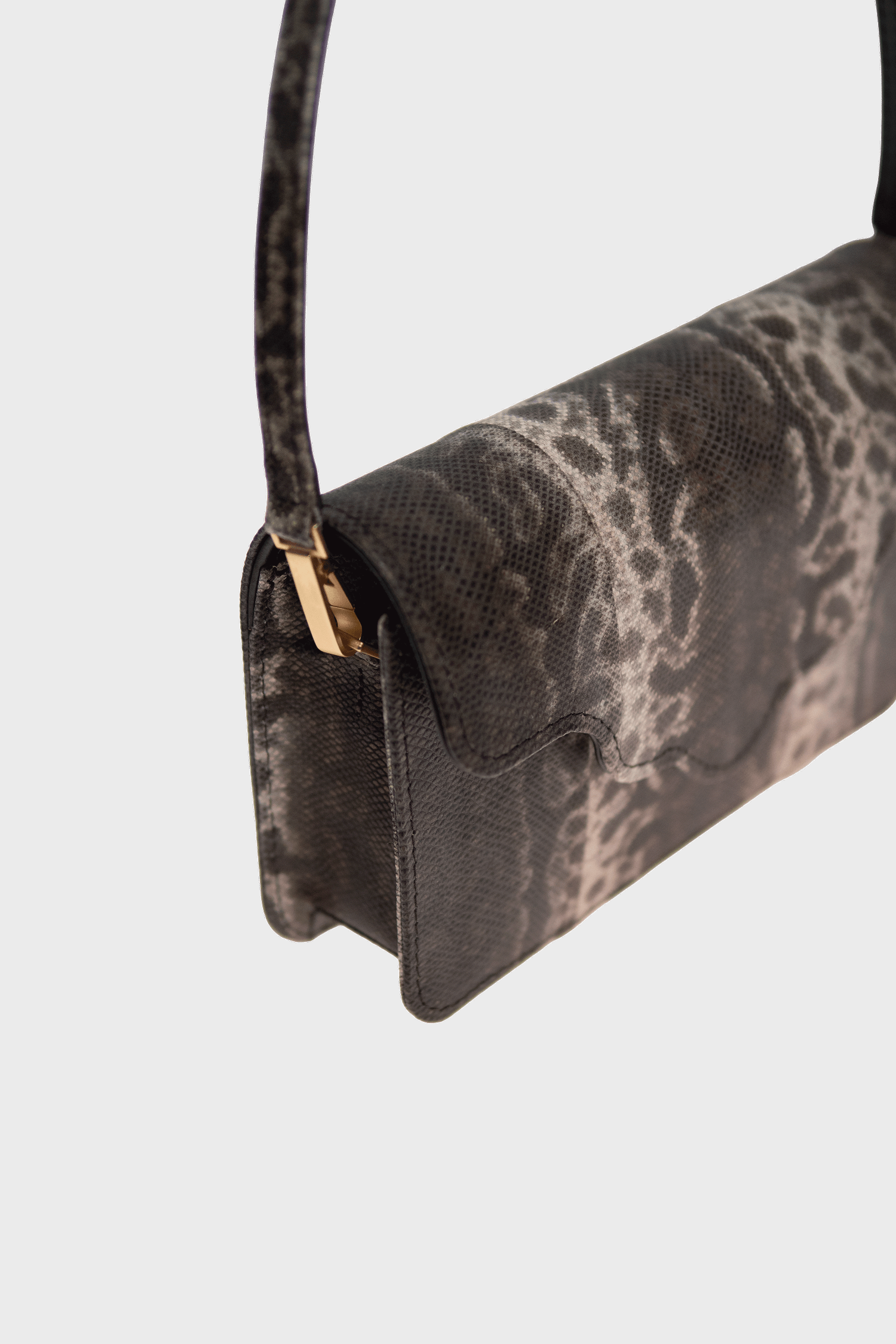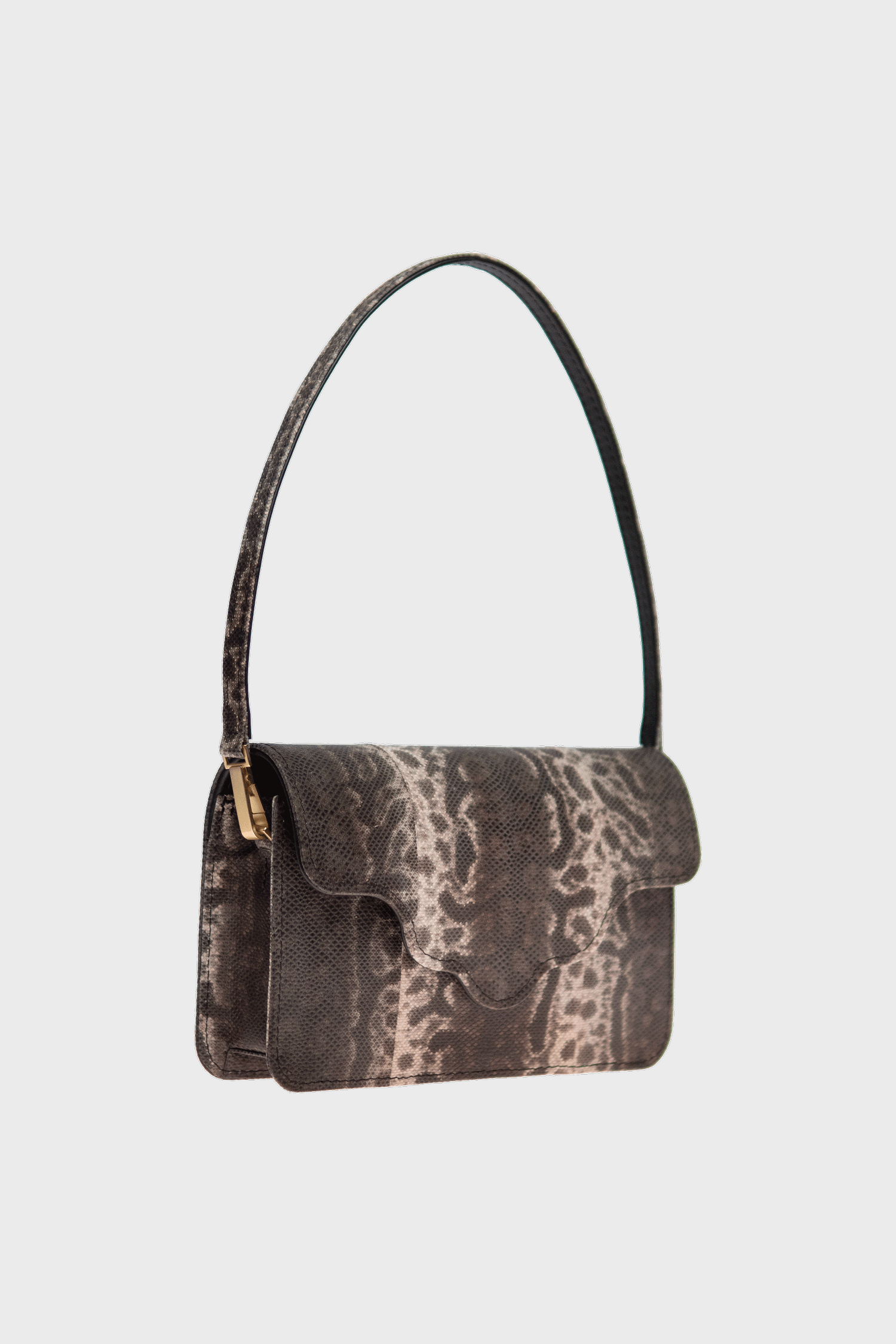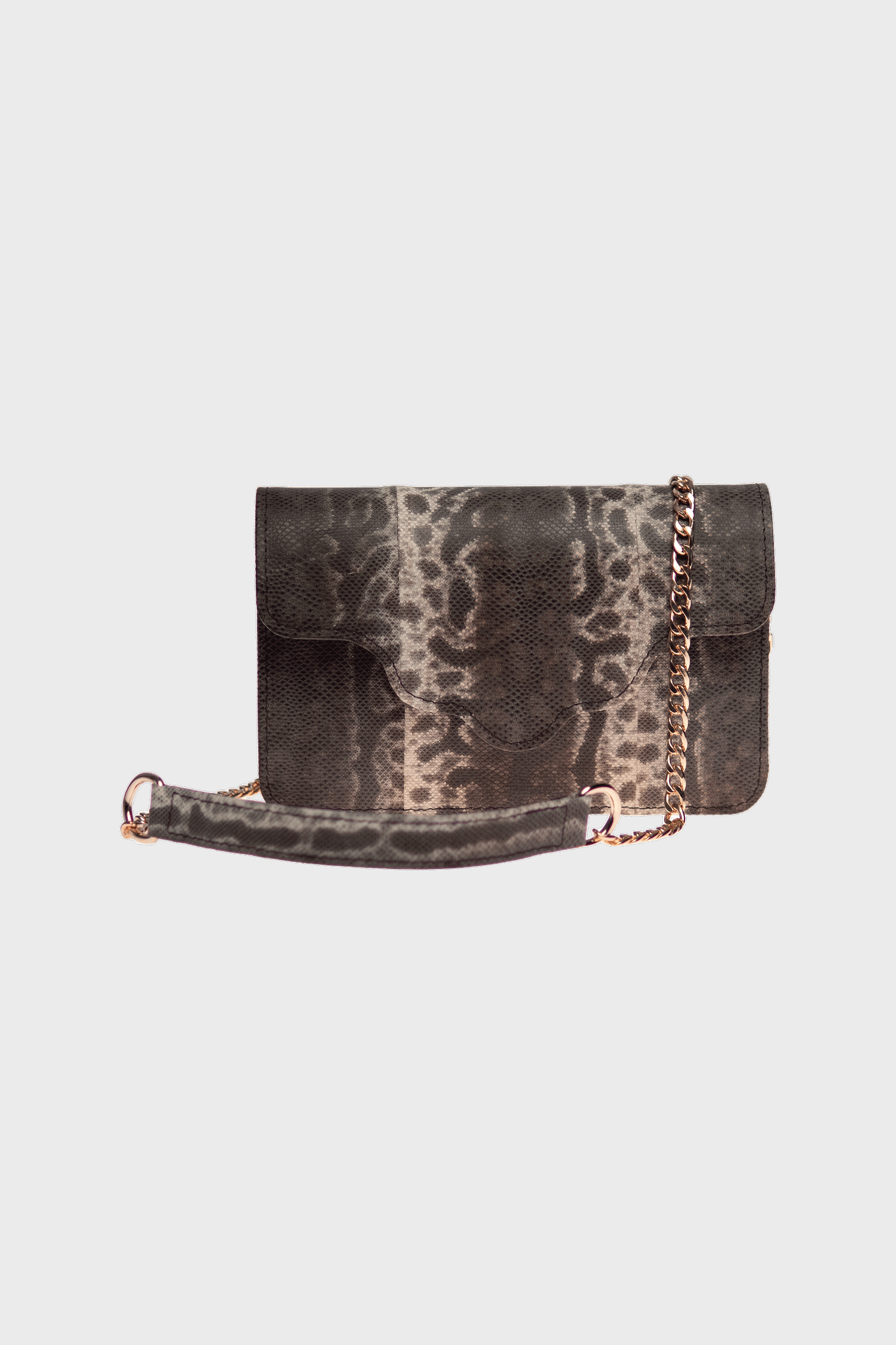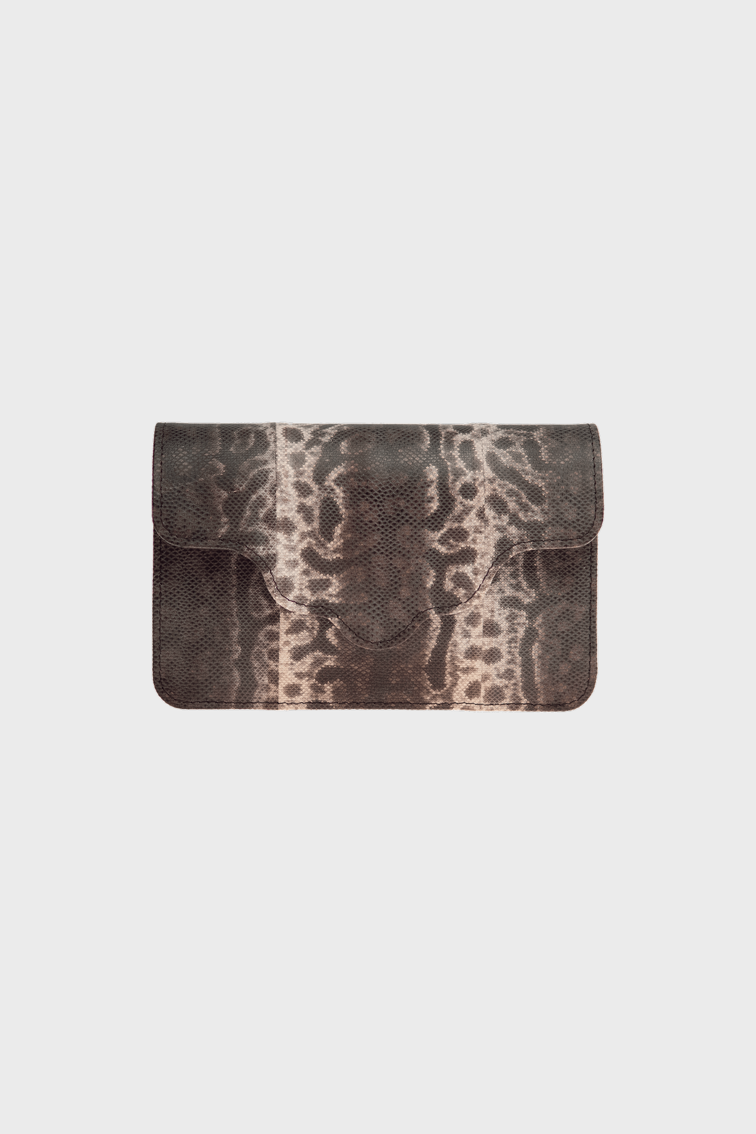 Torebka ARC MINI, wykonaną ze skóry węża Karung (łac. Acrochordus javanicus, gatunek niepodlegający CITES) w kolorze beżu i brązu. Ta torebka to doskonałe połączenie nowoczesności z klasycznym stylem, które zachwyci każdego.