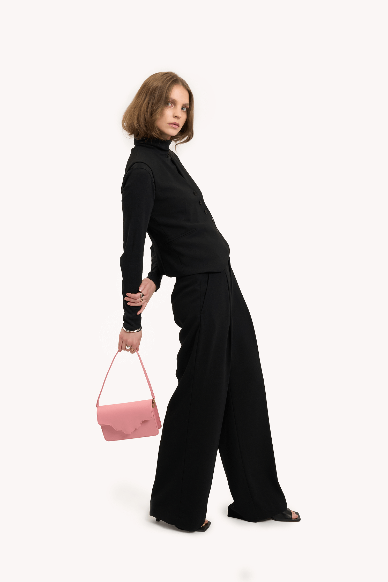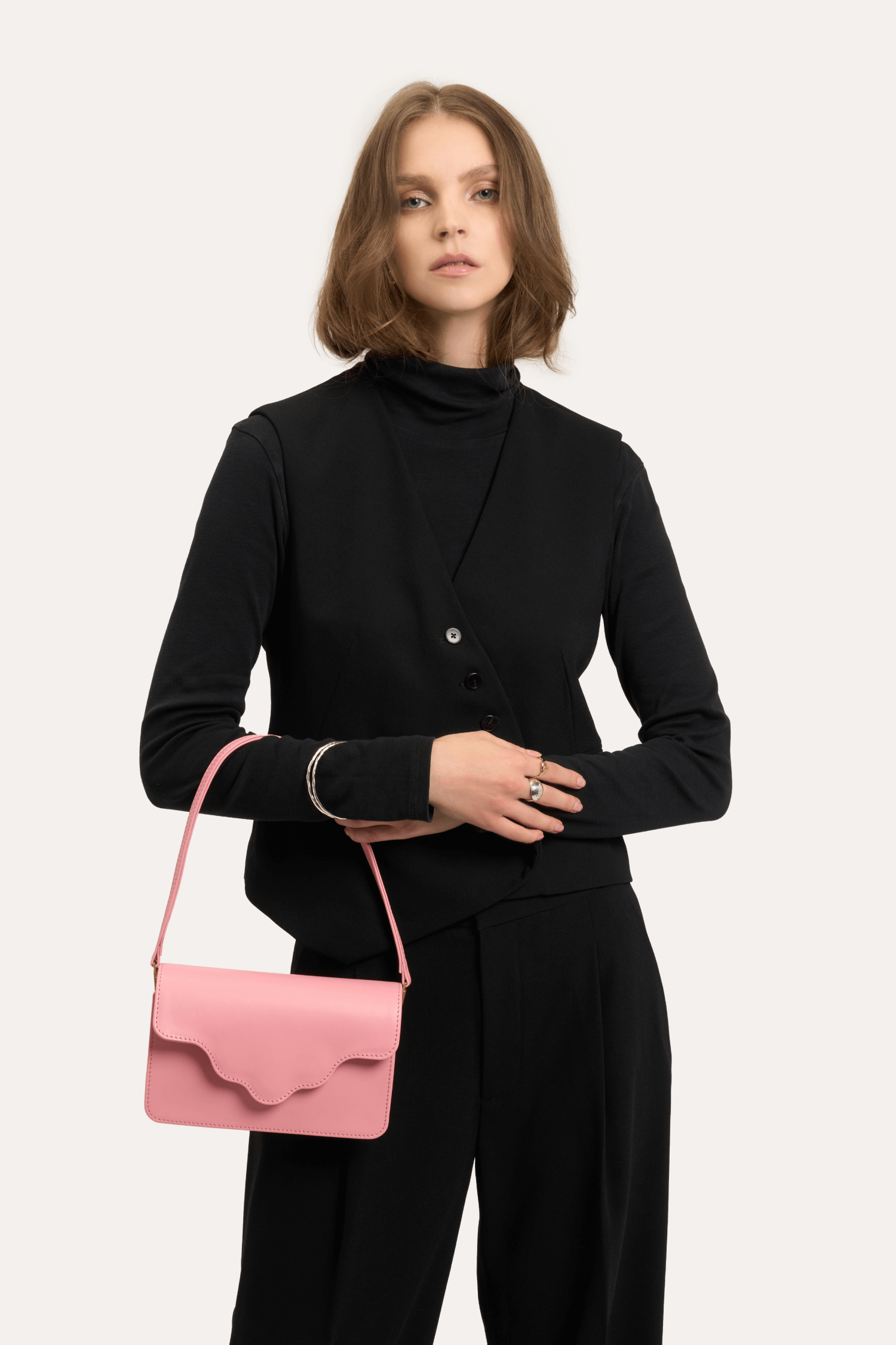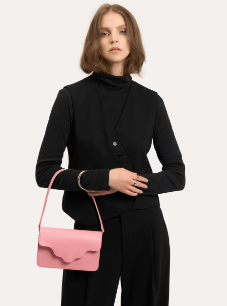 Torebka ARC MINI, wykonaną z wysokiej jakości skóry licowej w kolorze jasnoróżowym. Ta torebka to doskonałe połączenie nowoczesności z klasycznym stylem, które zachwyci każdego.