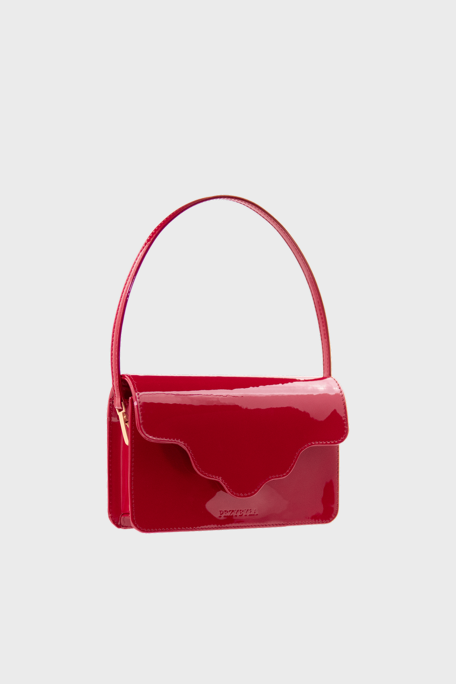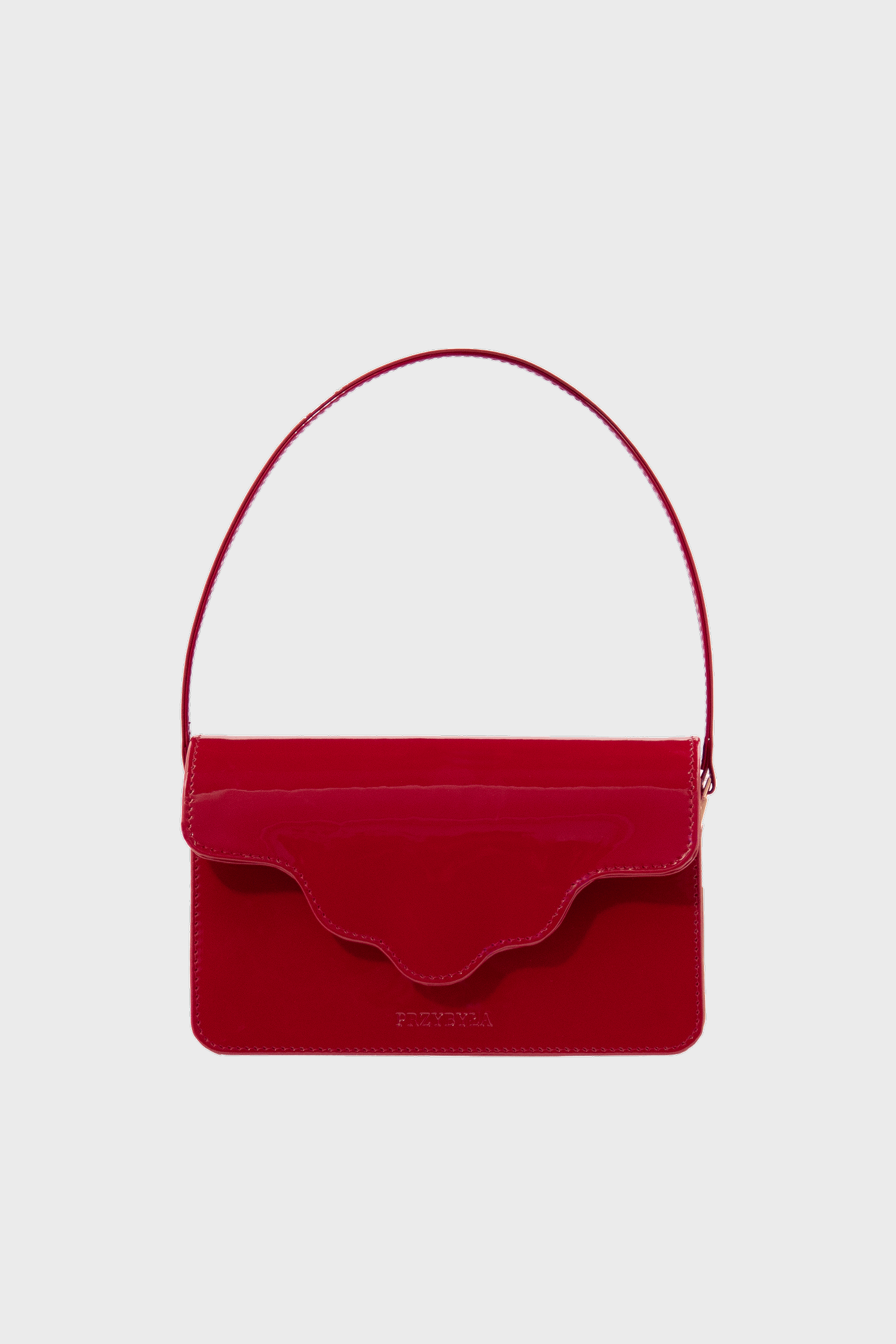 Torebka ARC MINI, wykonaną z wysokiej jakości skóry lakierowanej w czerwonym kolorze. Ta torebka to doskonałe połączenie nowoczesności z klasycznym stylem, które zachwyci każdego.