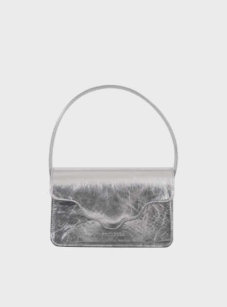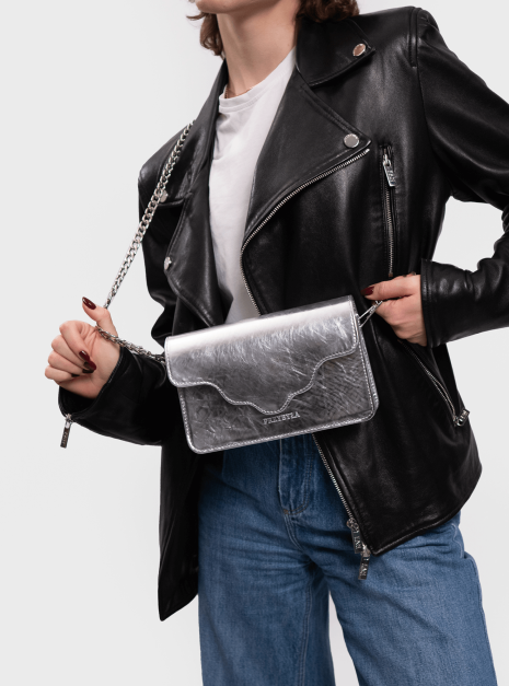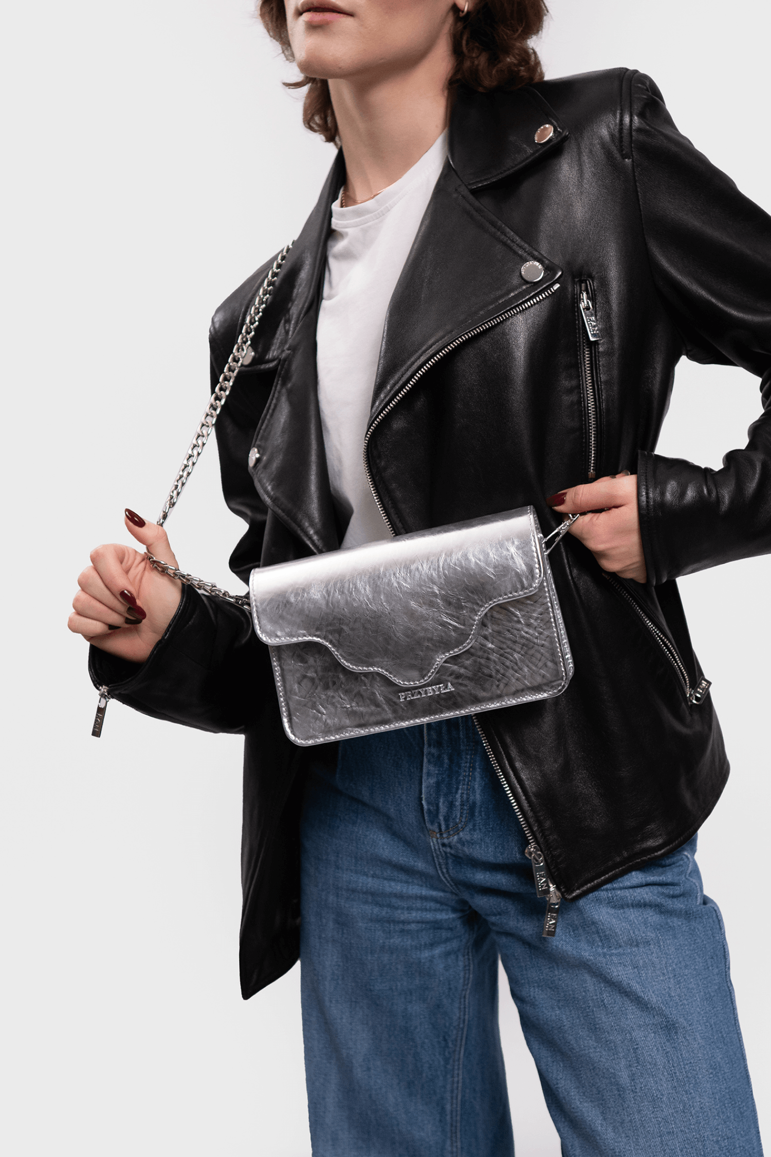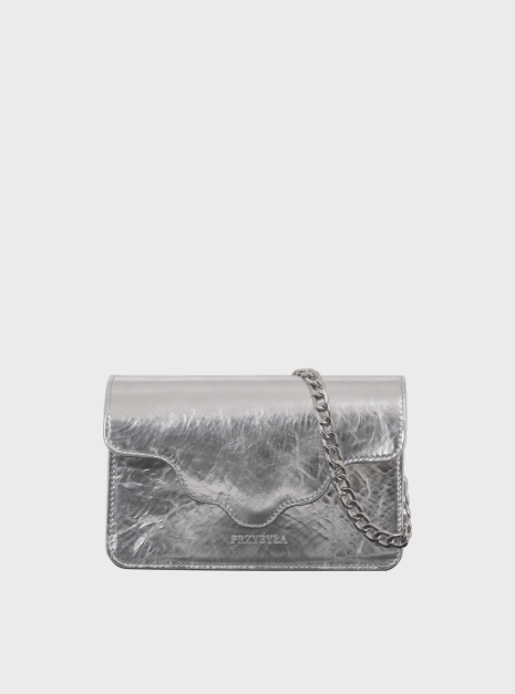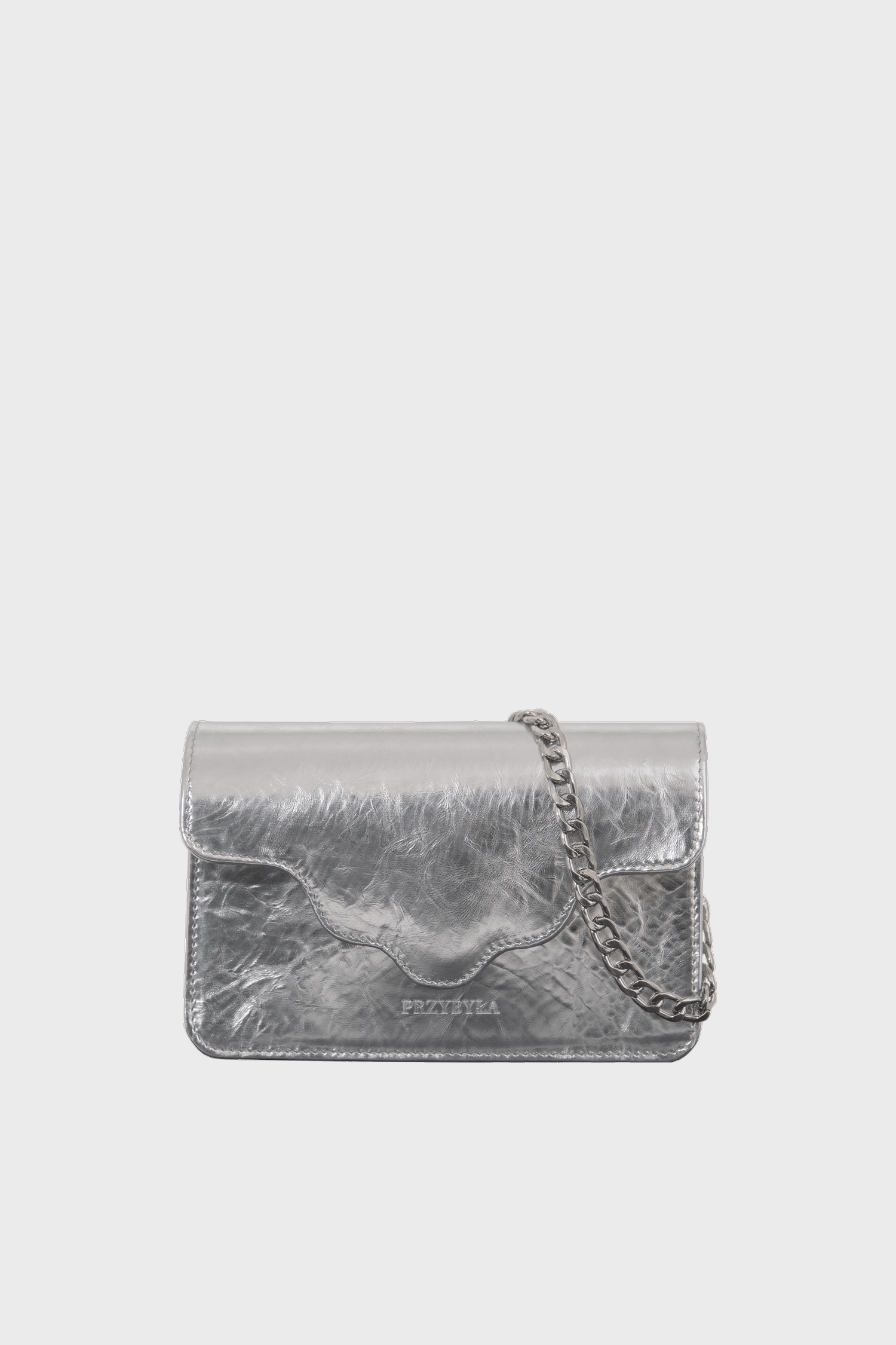 Torebka ARC MINI, wykonaną ze skóry strukturalnej w kolorze srebrnym. Skóra jest ręcznie przygotowywana, by nabrała indywidualnej struktury. Ten wzór na skórze to zapowiedź trendów i rozwiązań na najbliższe sezony.