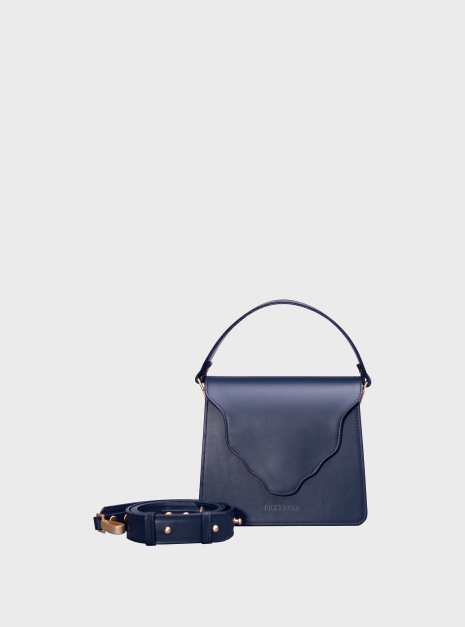 Torebka ARC navy blue został wykonana z naturalnej skóry w kolorze granatowym. Podszewka jest wykonana z bawełnianej tkaniny w kolorze niebieskim.