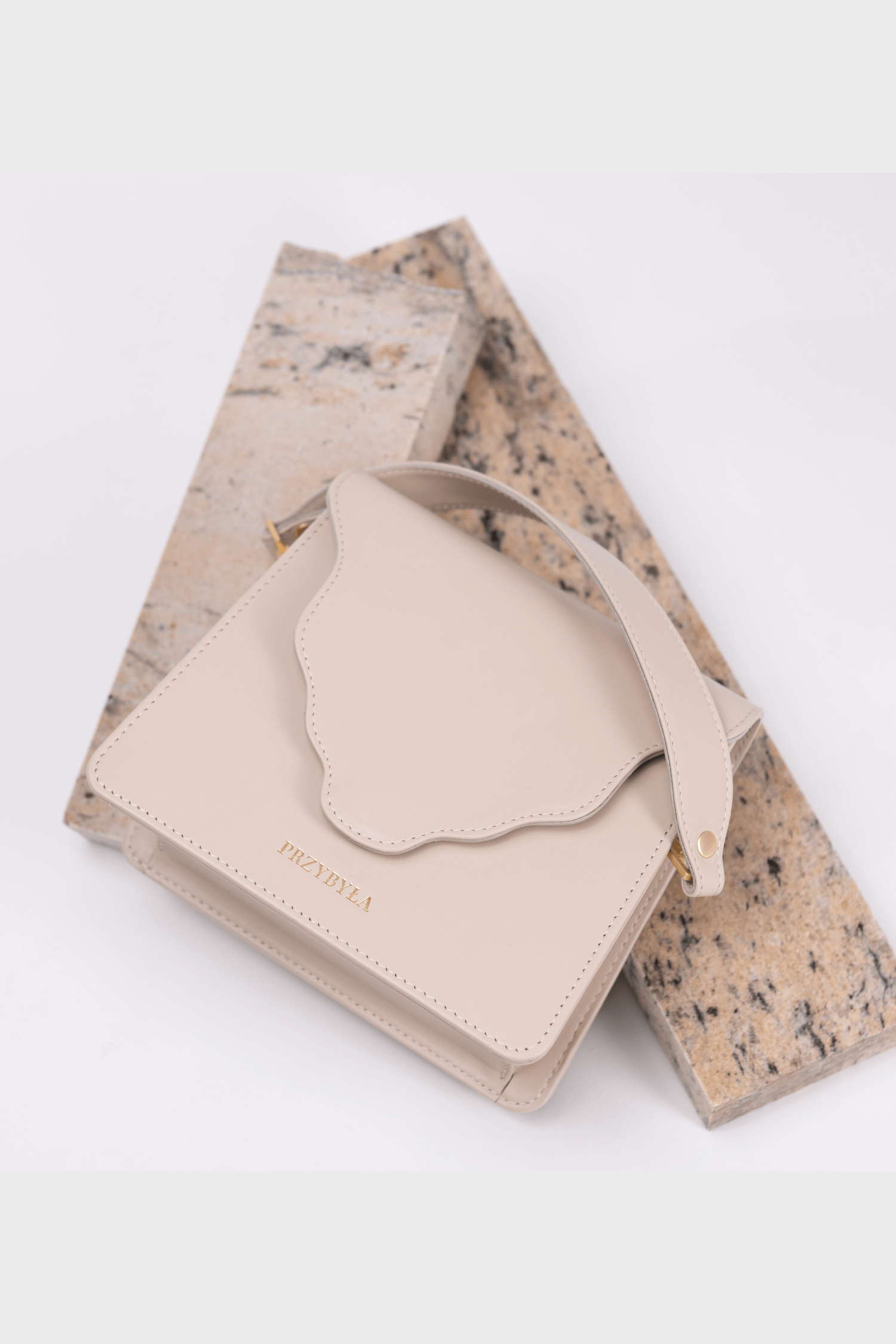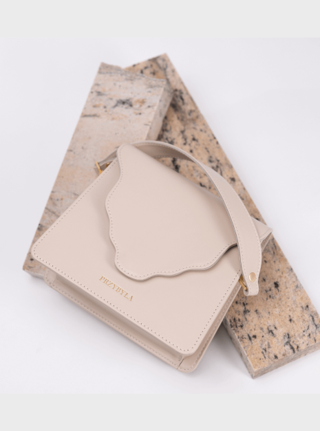 Torebka ARC nude został wykonana z naturalnej skóry w kolorze nude – cielistym. Podszewka jest wykonana z bawełnianej tkaniny w kolorze beżowym.