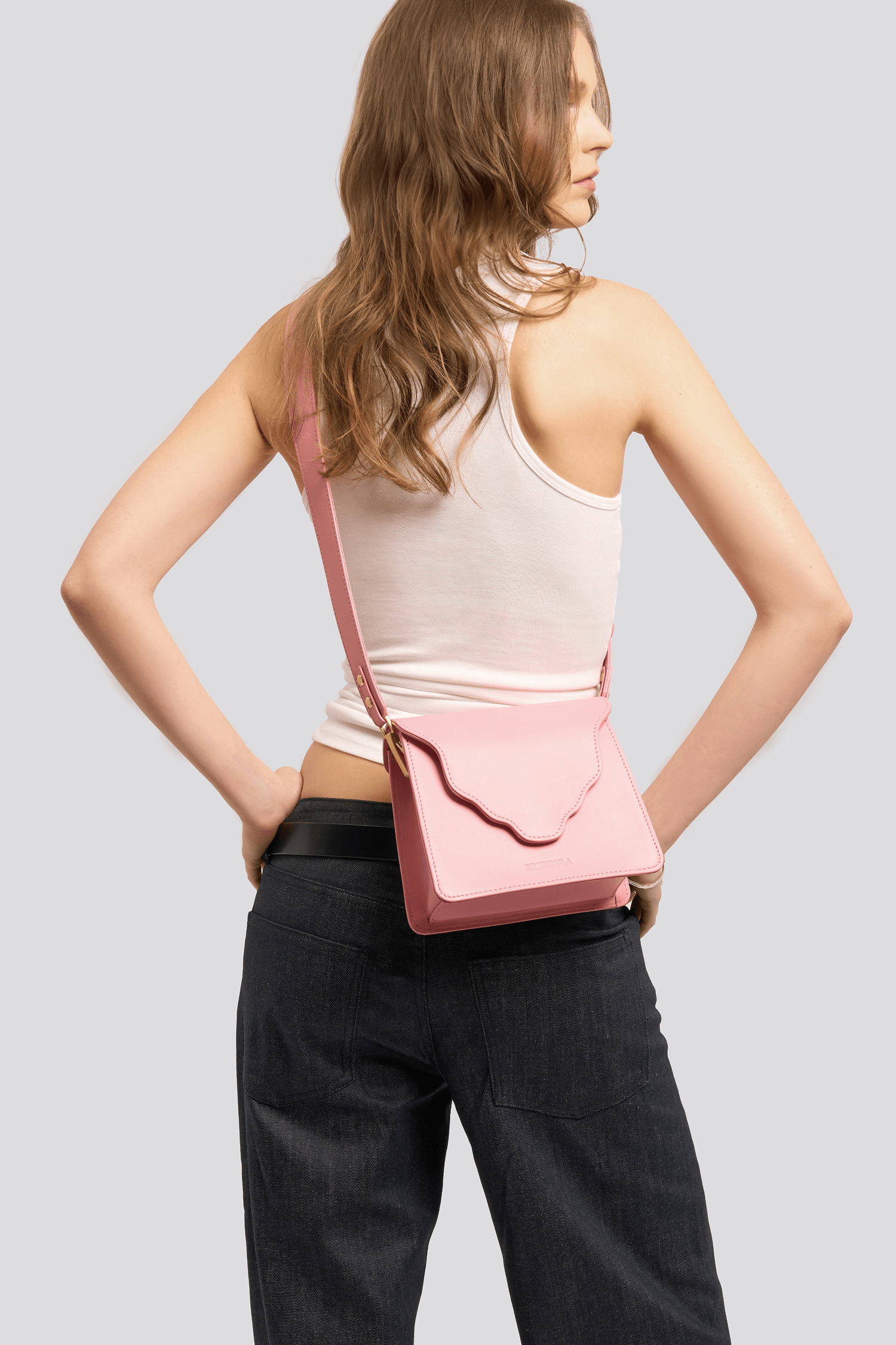 Torebka ARC peony pink został wykonana z naturalnej skóry w kolorze pudrowego różu. Podszewka jest wykonana z bawełnianej tkaniny w kolorze bordowym.