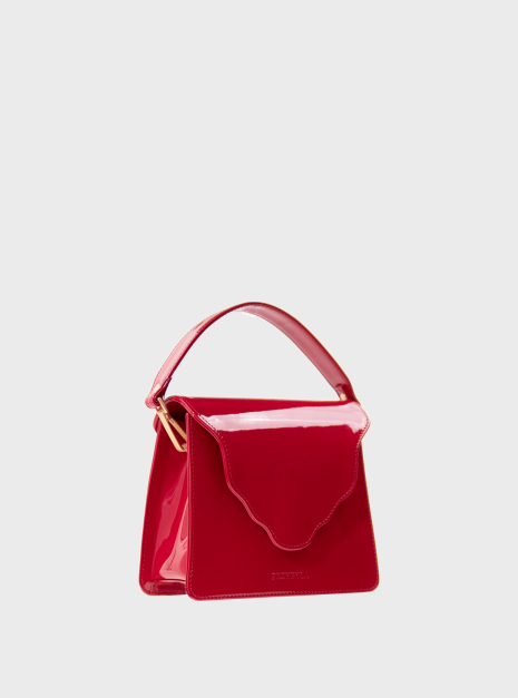 Torebka ARC glosy red wykonana ze skóry lakierowanej w kolorze czerwonym. Podszewka jest wykonana z bawełnianej tkaniny w kolorze bordowym.