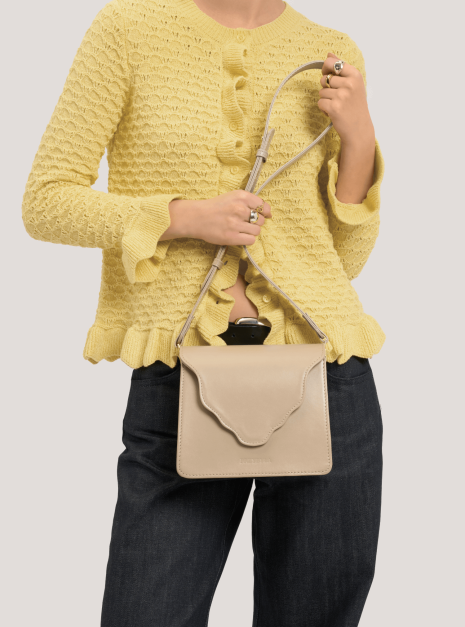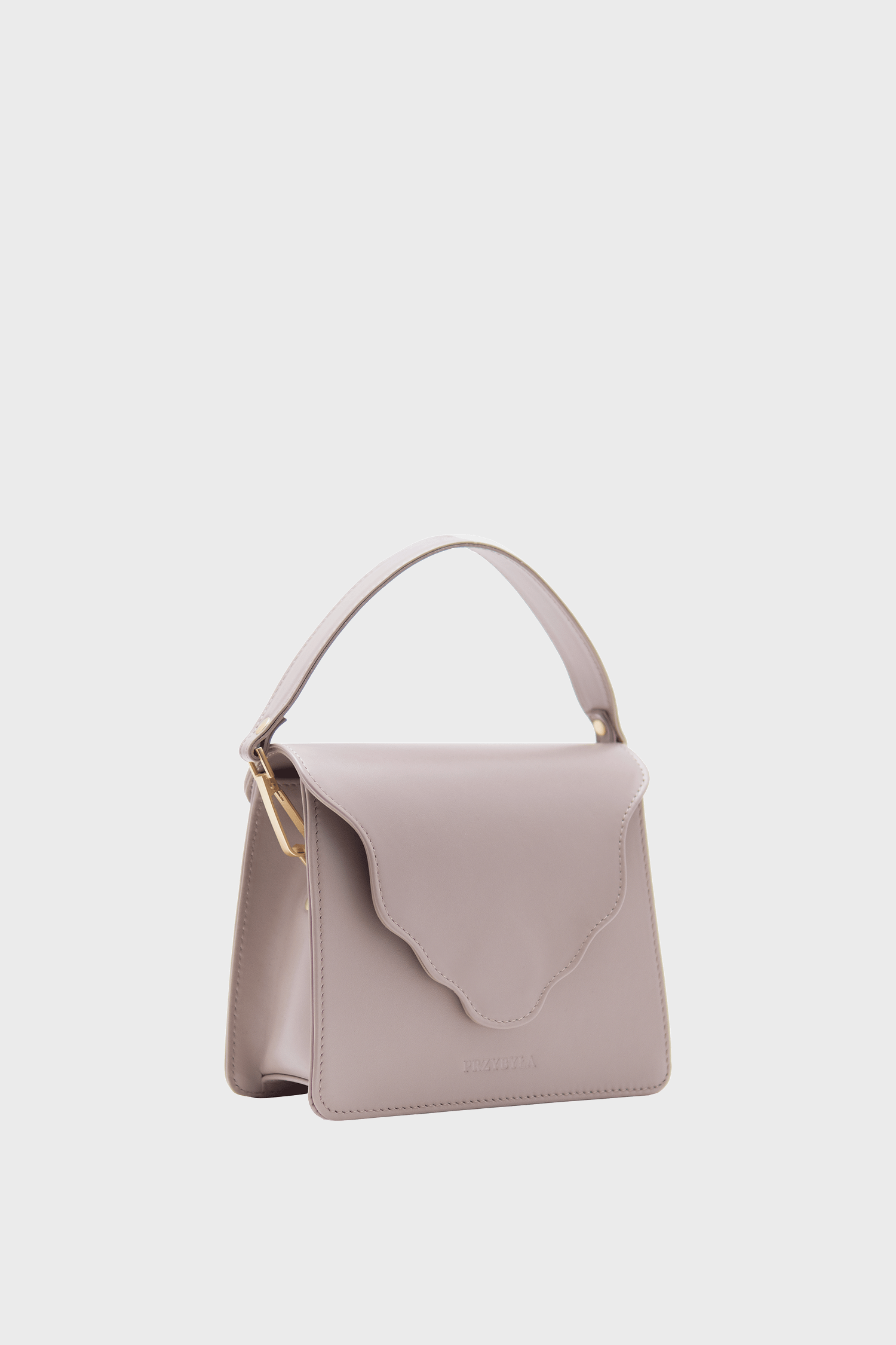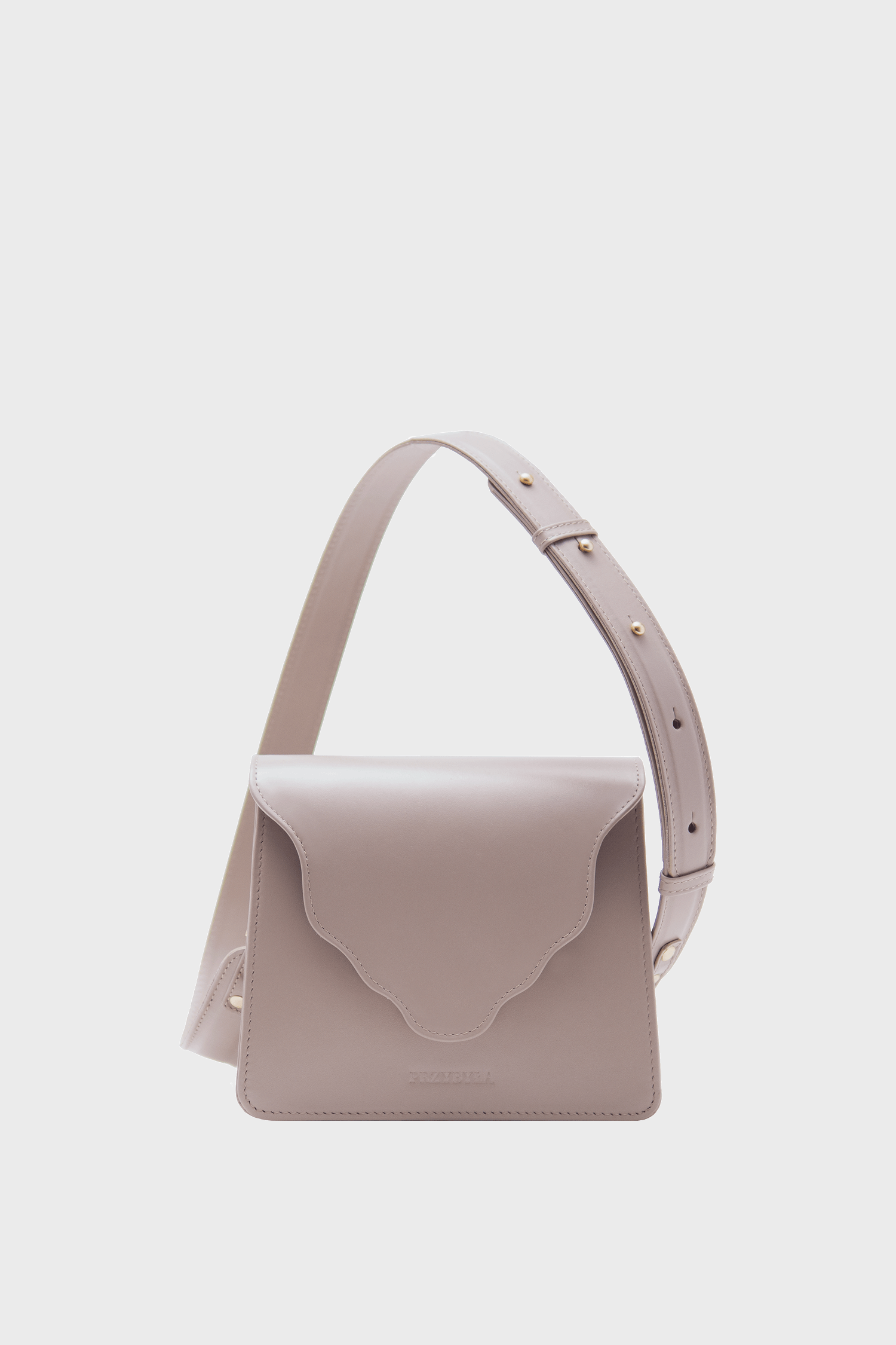 Torebka ARC taupe został wykonana z naturalnej skóry w kolorze taupe – szarobeżowym. Podszewka jest wykonana z bawełnianej tkaniny w kolorze jasnoszarym.