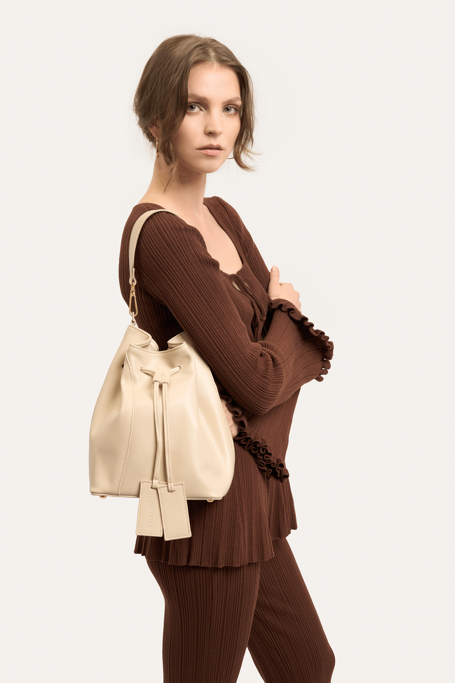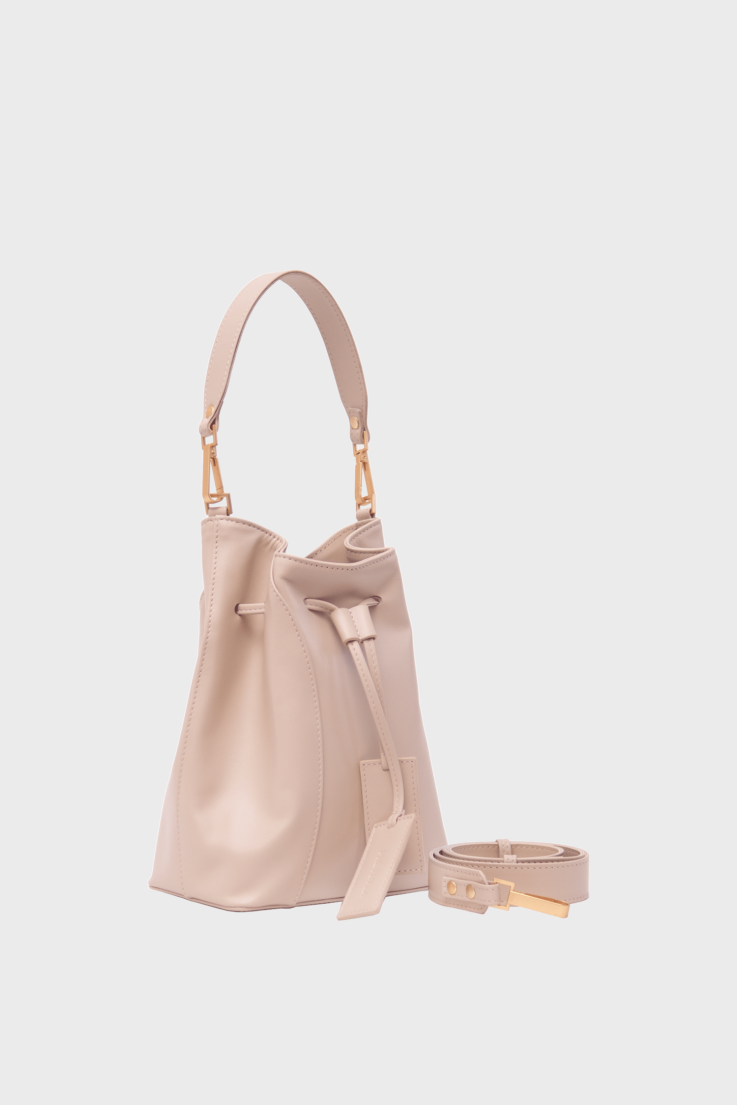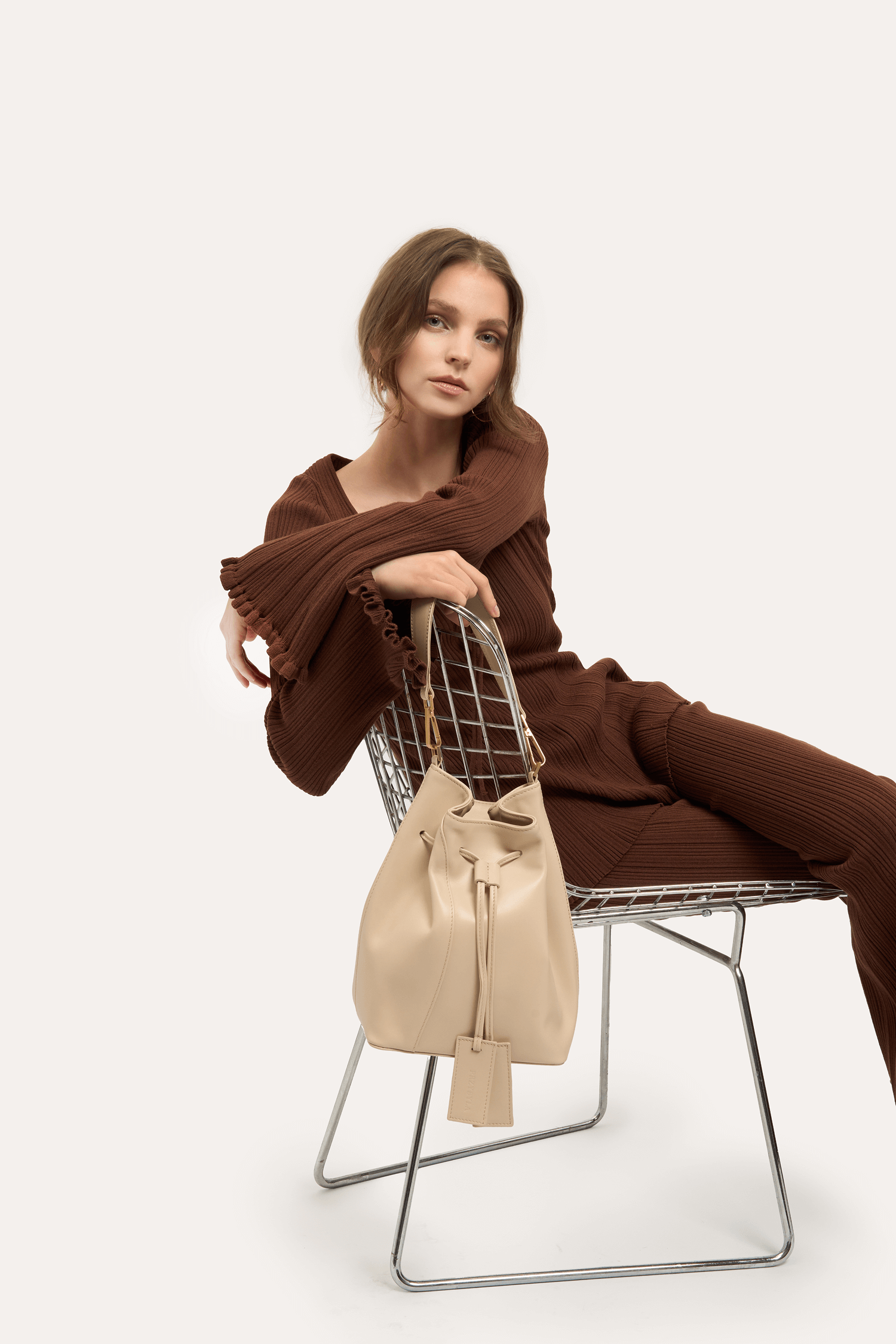 Worek Merlot nude jest wykonany z wysokiej jakości skóry licowej w kolorze nude. Podszewka jest wykonana z bawełnianej tkaniny w kolorze jasnoszarym.