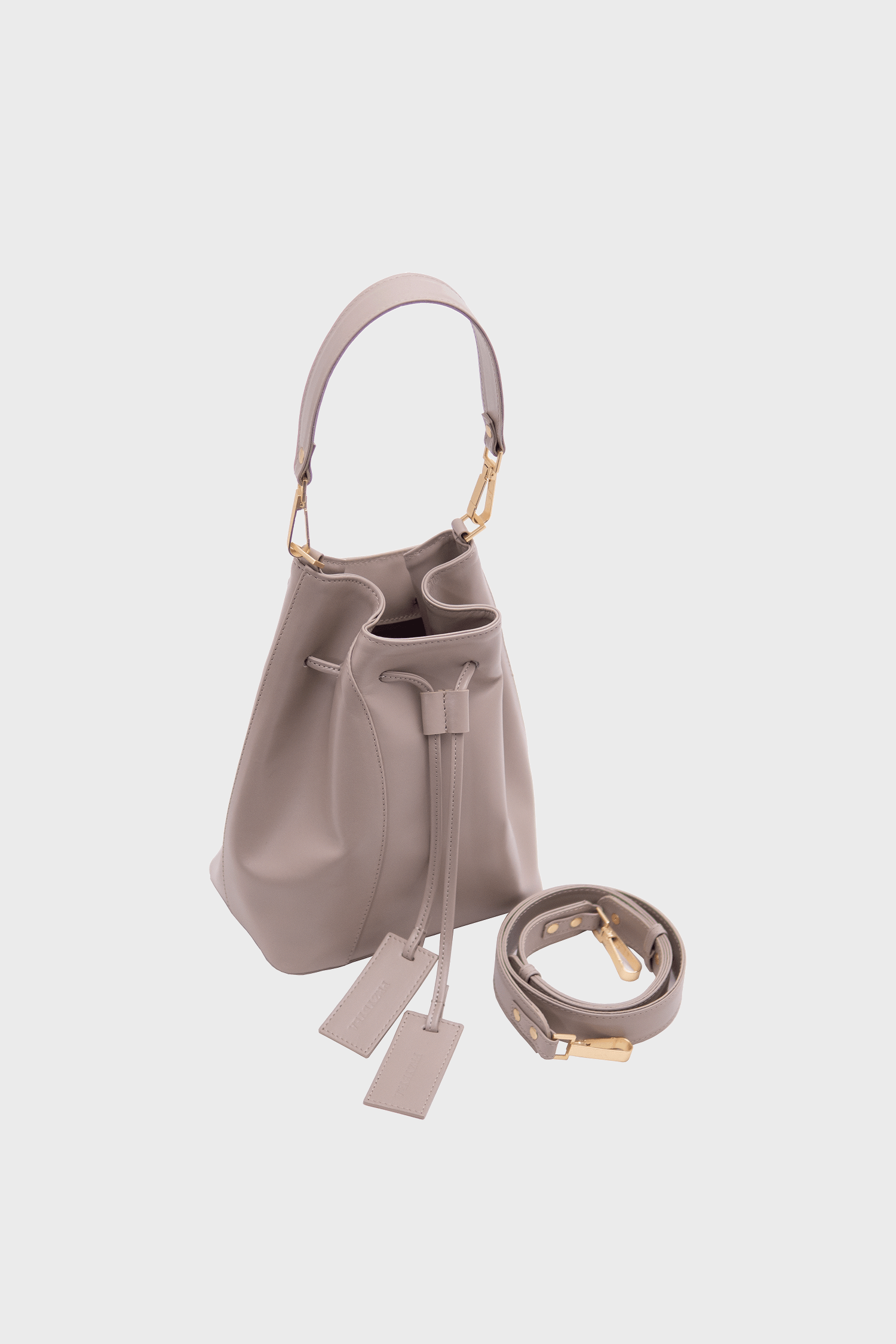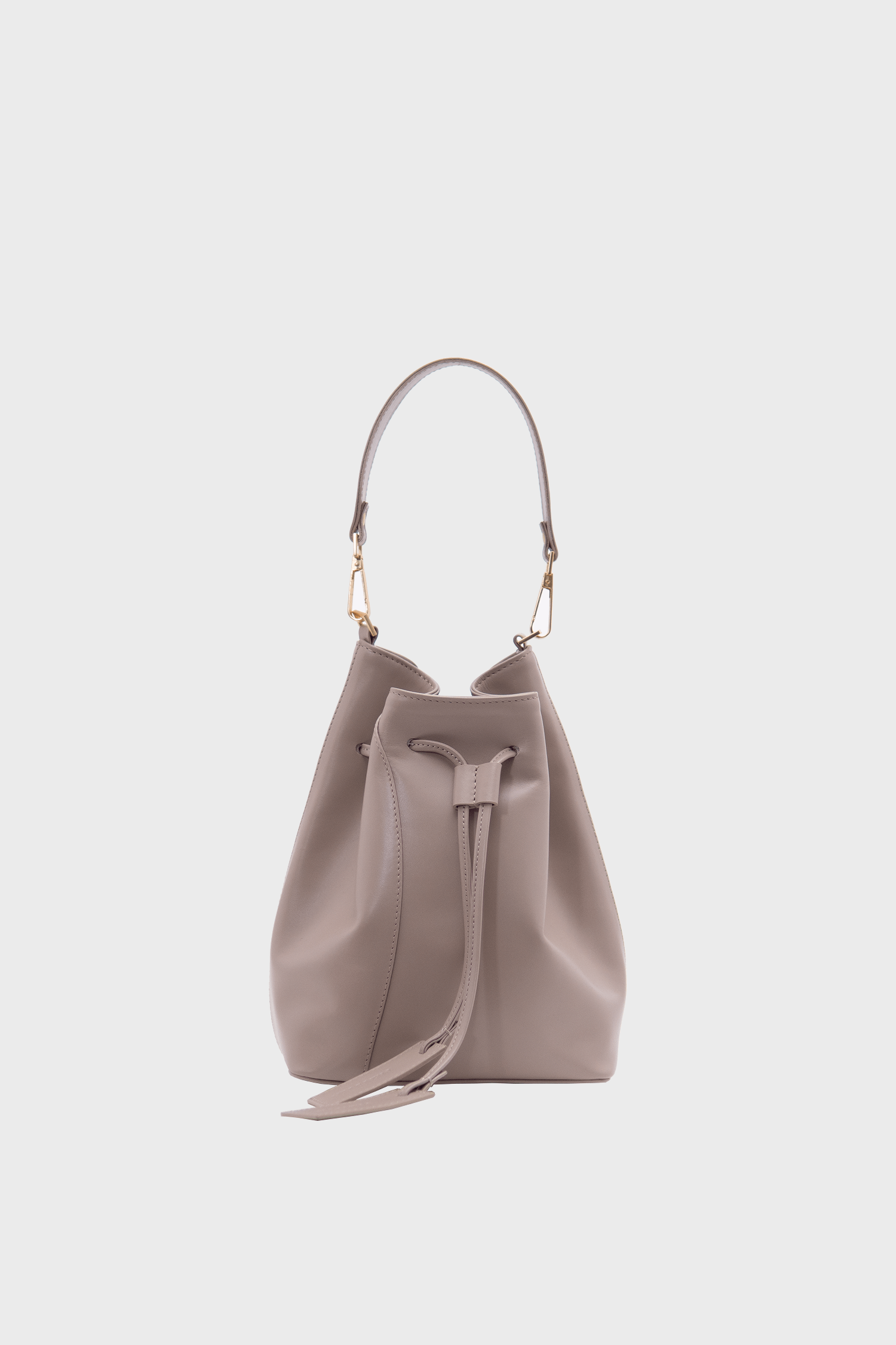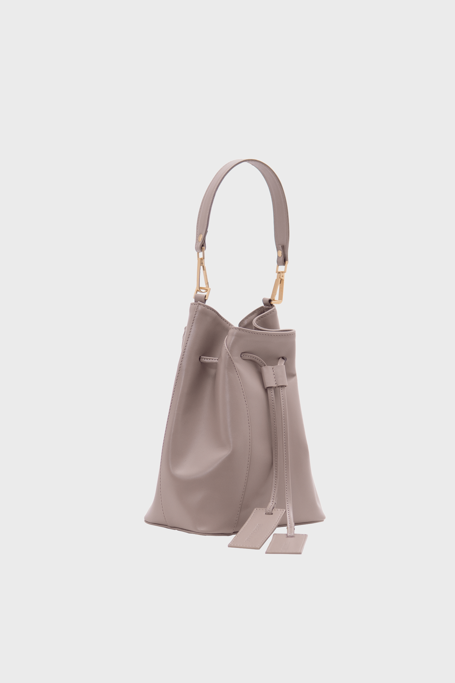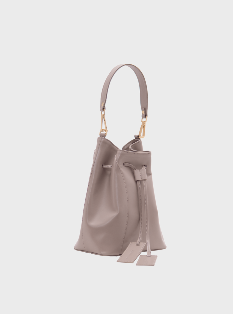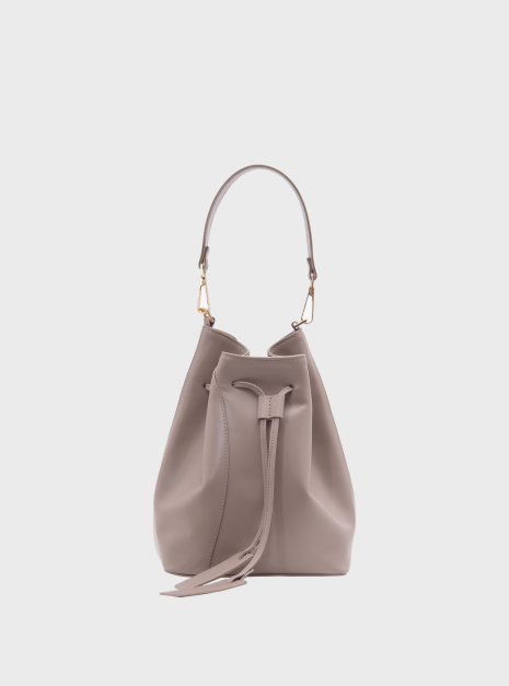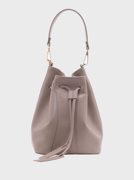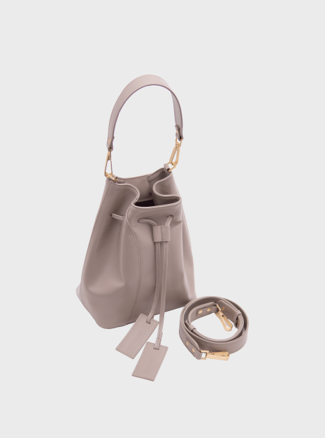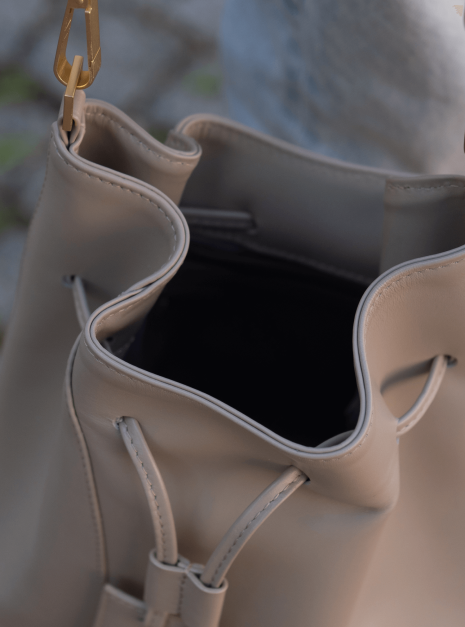Worek Merlot taupe jest wykonany z wysokiej jakości skóry licowej w kolorze taupe – kolor łączący beż i szarość, który zmienia się w zależności od światła. Podszewka jest wykonana z bawełnianej tkaniny w kolorze jasnoszarym.